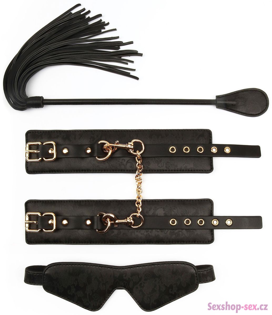 Sada je ideální pro objevování BDSM her. Najdete v ní pouta na ruce, masku na oči a oboustranný bičík, takže si užijete bondage, spanking i hru se smysly.