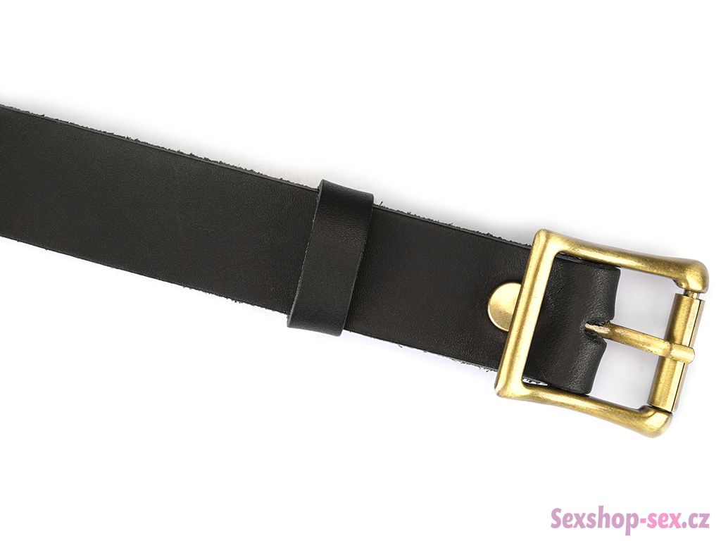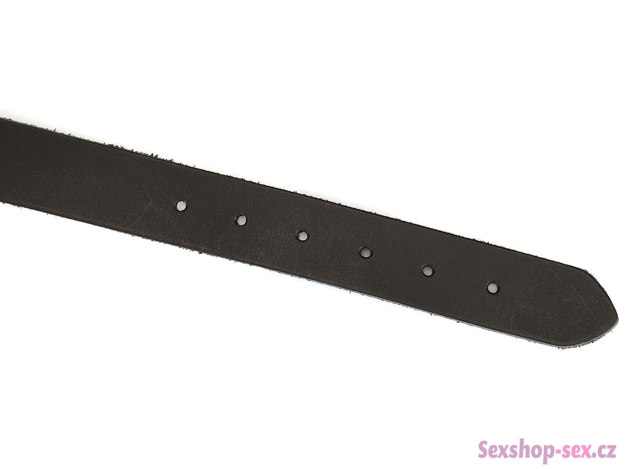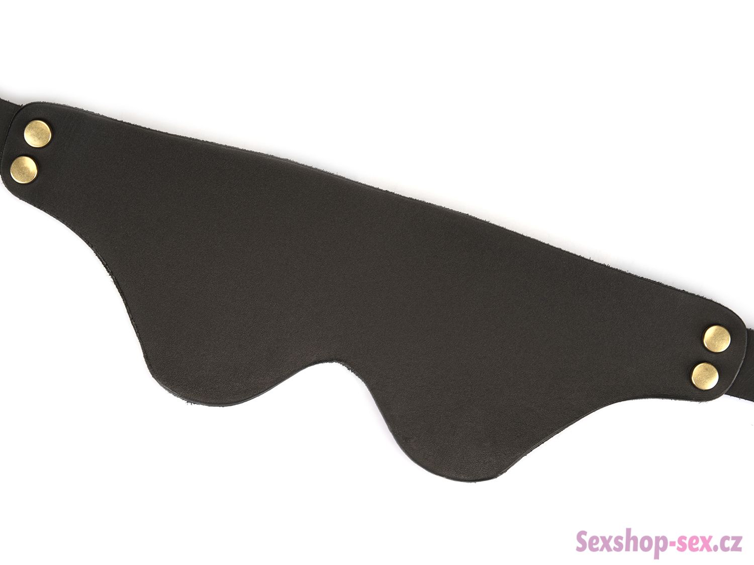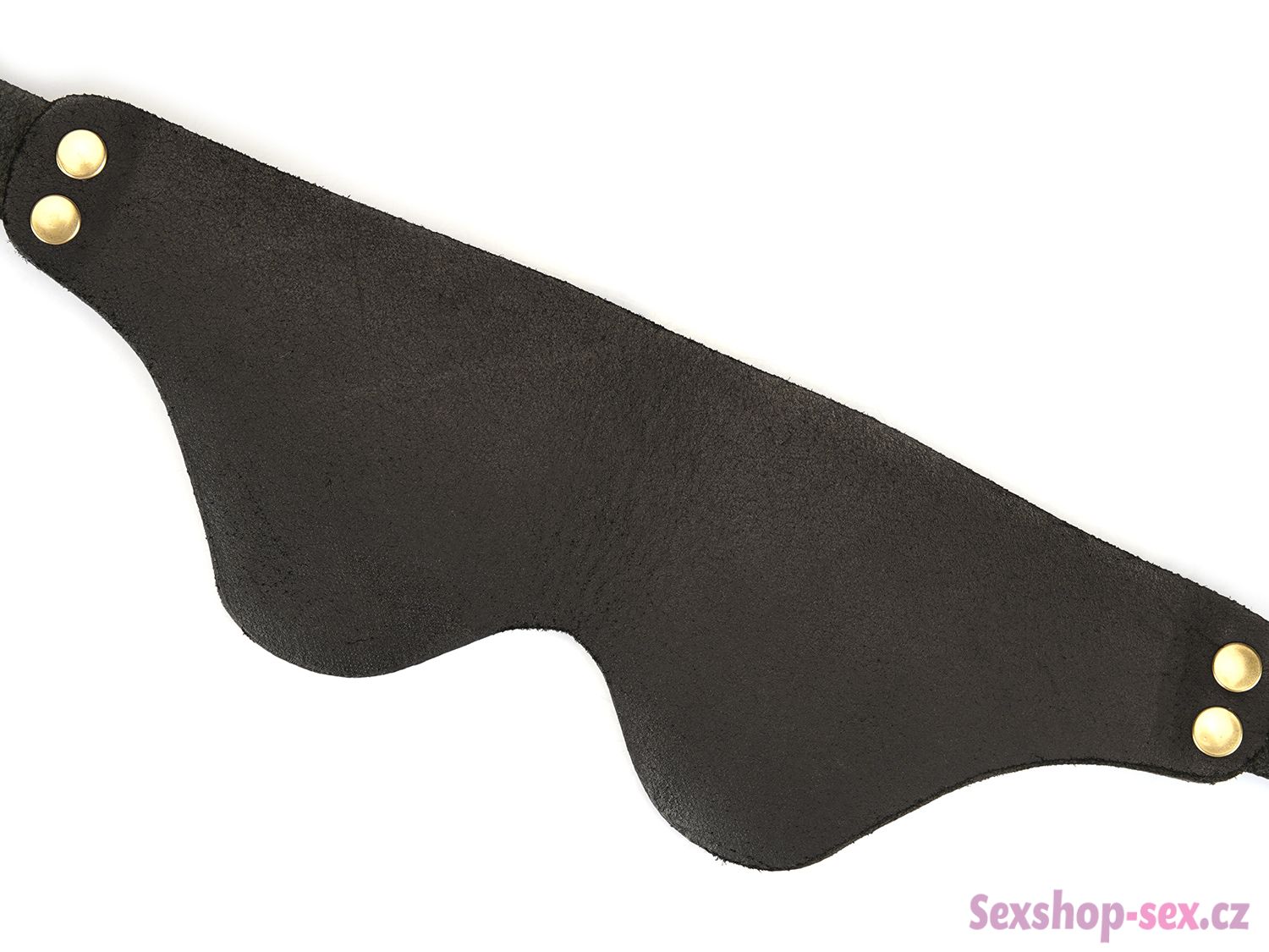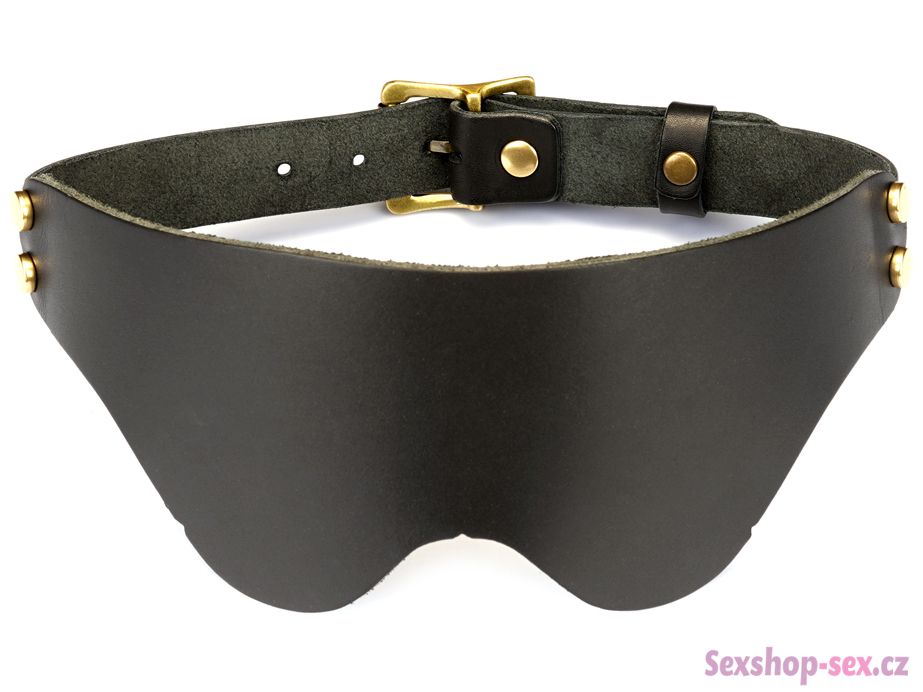 Maska je vyrobená z tlusté hovězí kůže. Má zapínání na kovovou přezku, takže dobře drží na svém místě a snadno si přizpůsobíte její velikost.