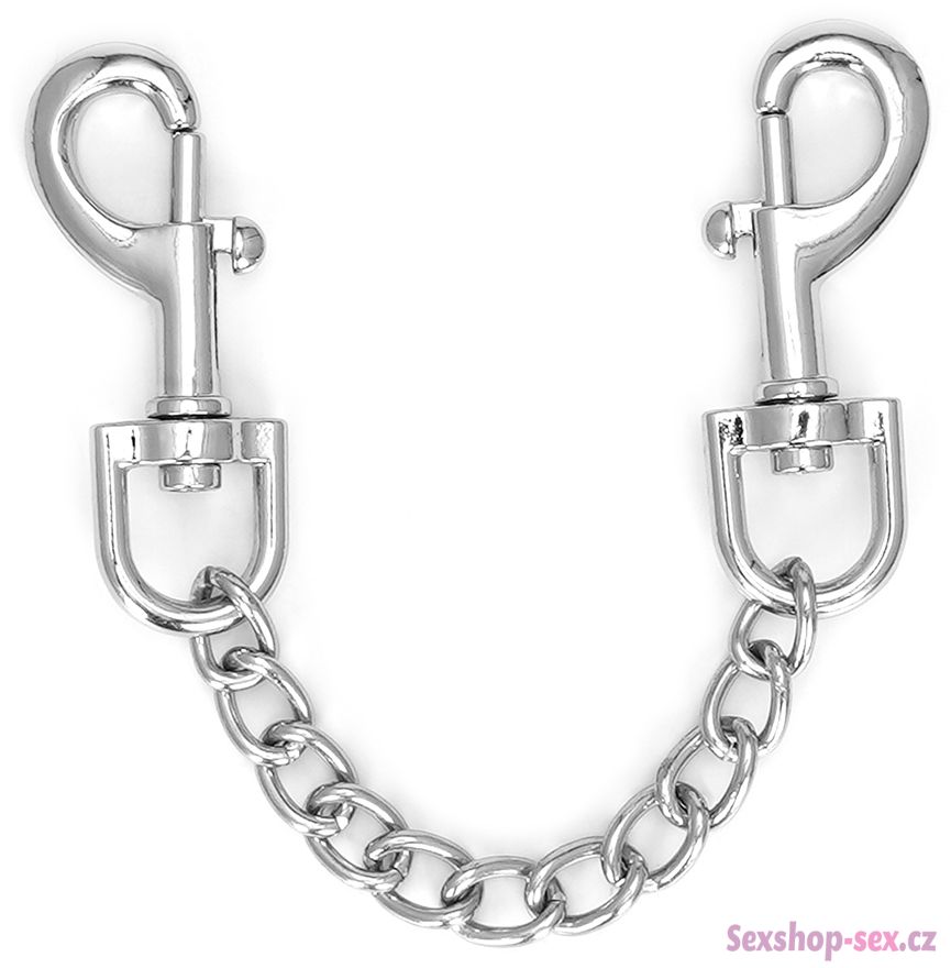 TIP: Řetízek lze snadno odepnout, takže pouta můžete použít i s jinými bondage pomůckami, třeba roztahovací tyčí.