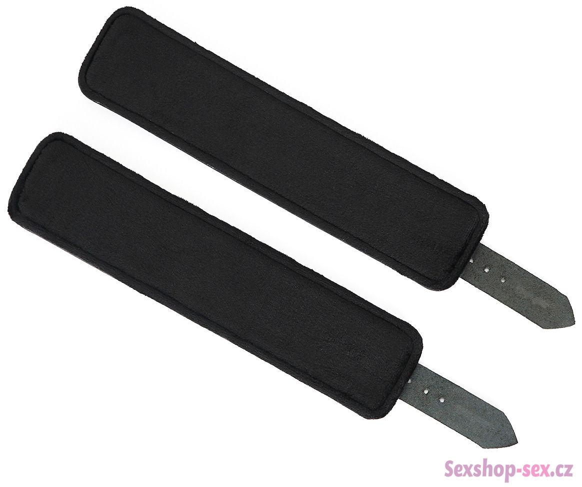 Mají zapínání na kovovou přezku a jsou spojená kovovým řetízkem s karabinkami.