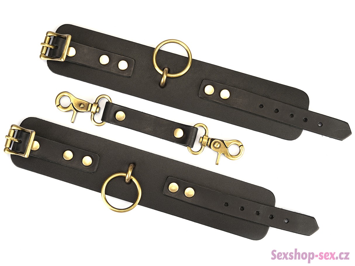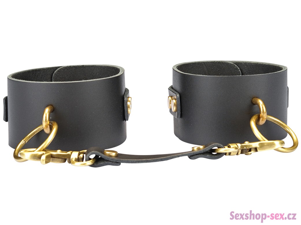Pouta jsou vyrobená z tlusté hovězí kůže – jsou pevná a odolná a hodí se i na drsnější BDSM hry. Jsou spojená koženým páskem s rychloupínacími karabinkami.