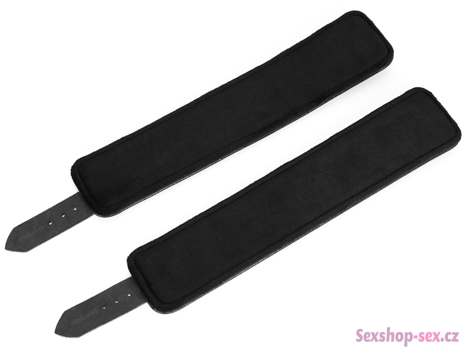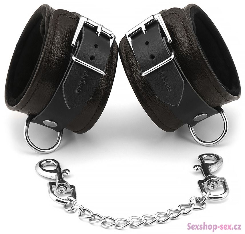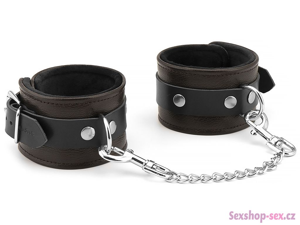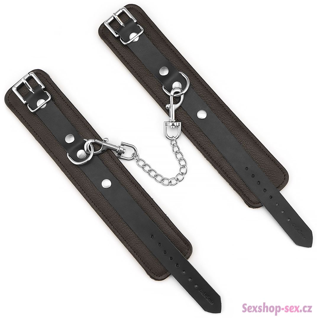 Mají zapínání na kovovou přezku a jsou spojená kovovým řetízkem s karabinkami.