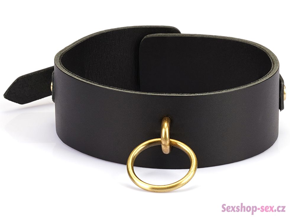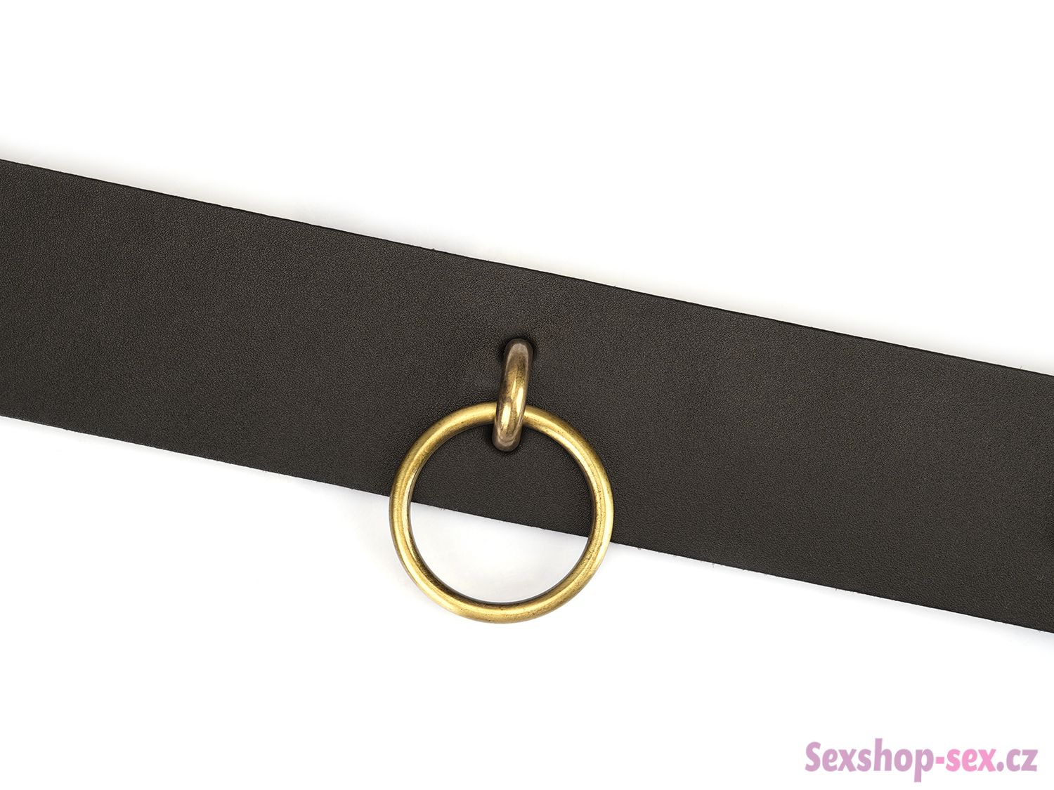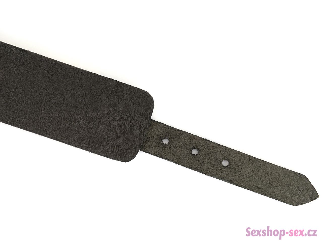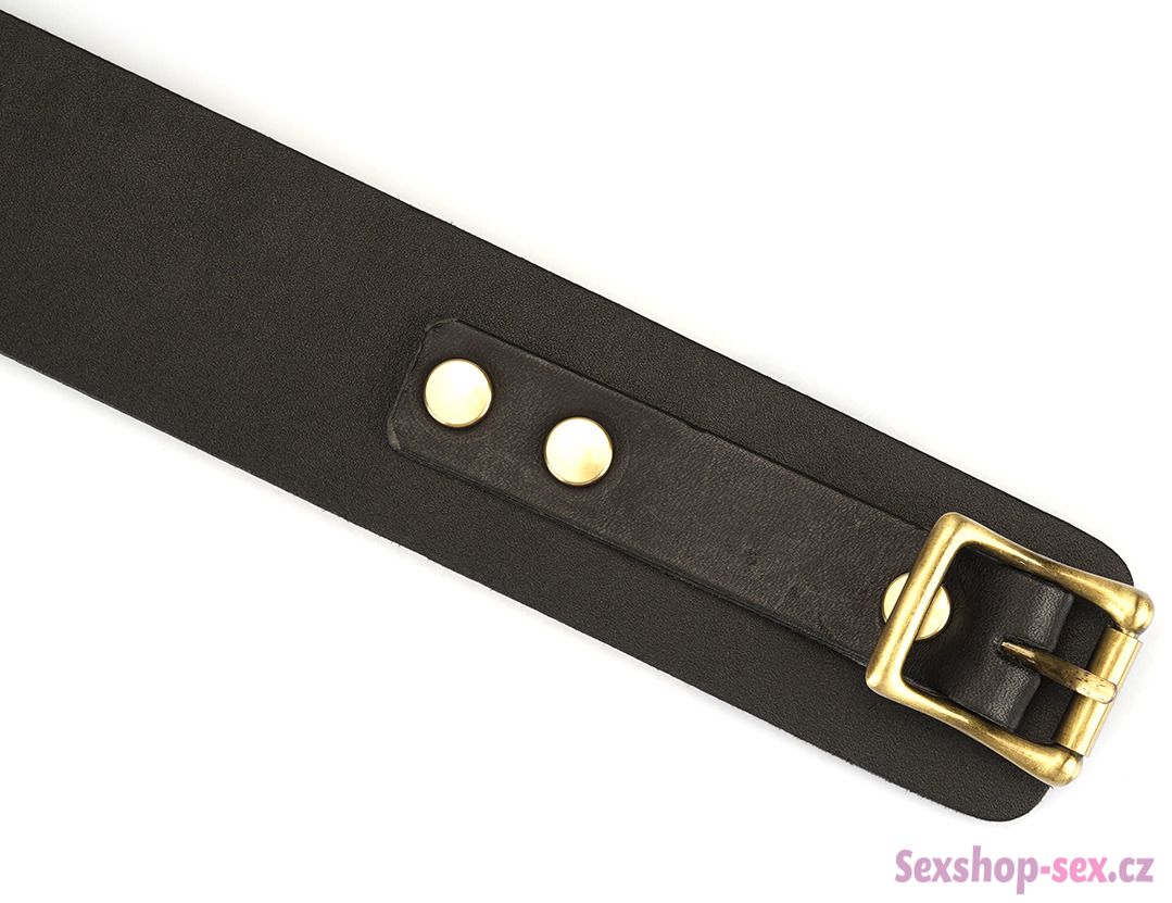 Obojek je vyrobený z tlusté hovězí kůže – je pevný a odolný a hodí se i na drsnější BDSM hry. Vodítko s kovovým řetízkem k obojku připnete pomocí karabinky.