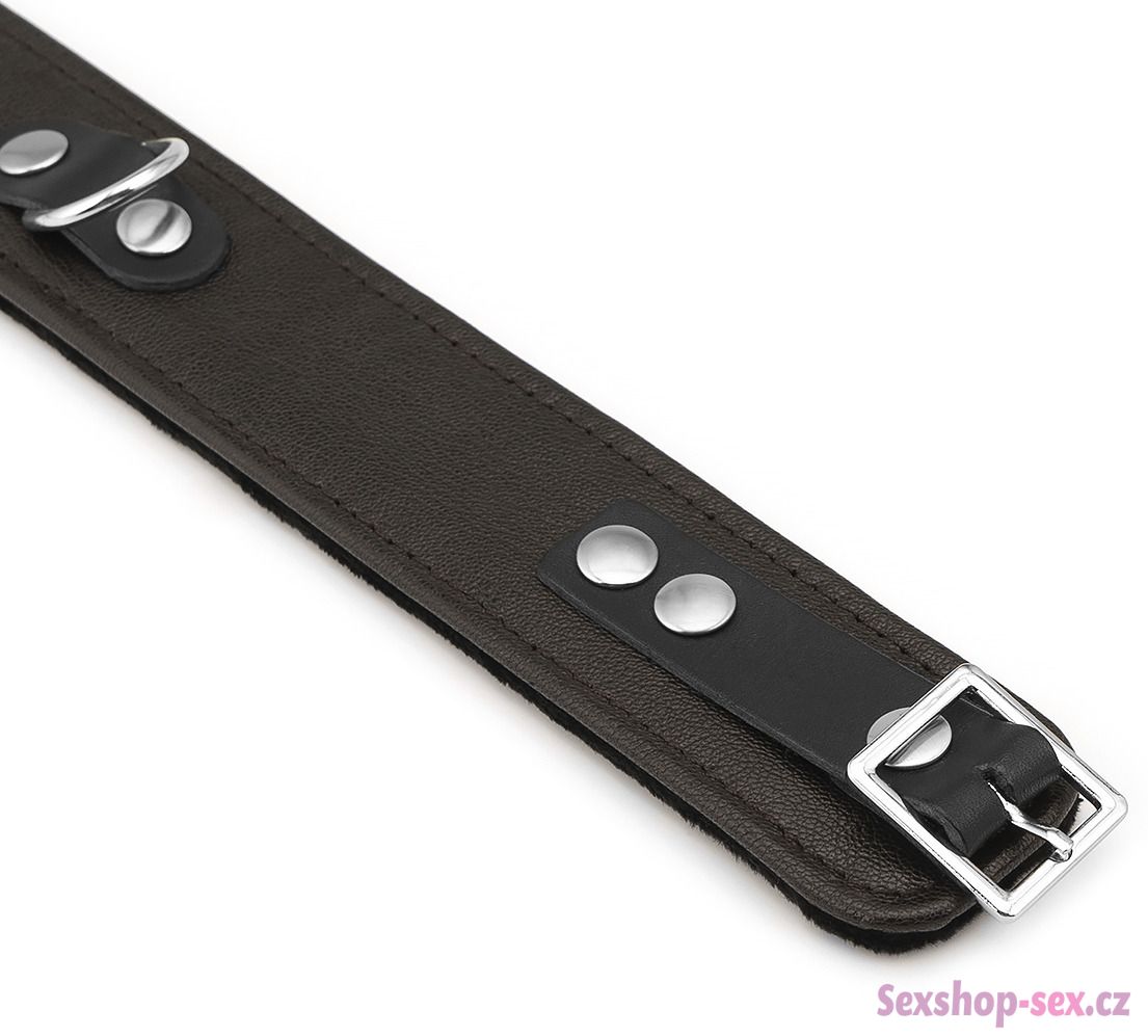 Obojek je vyrobený z kvalitní jehněčí kůže. Z vnitřní strany má měkké polstrování – je podšitý hebkým sametem pro pohodlnější nošení.