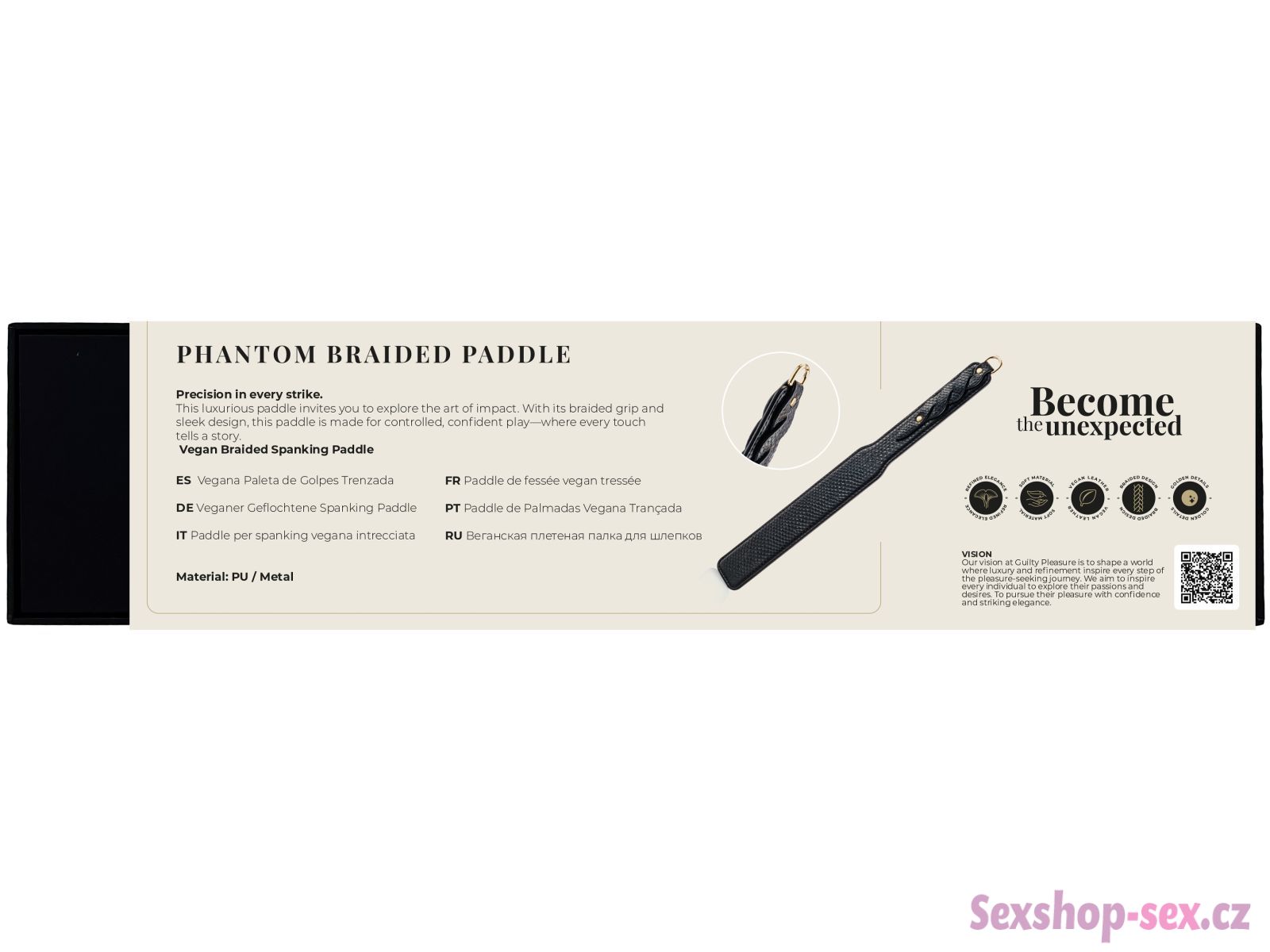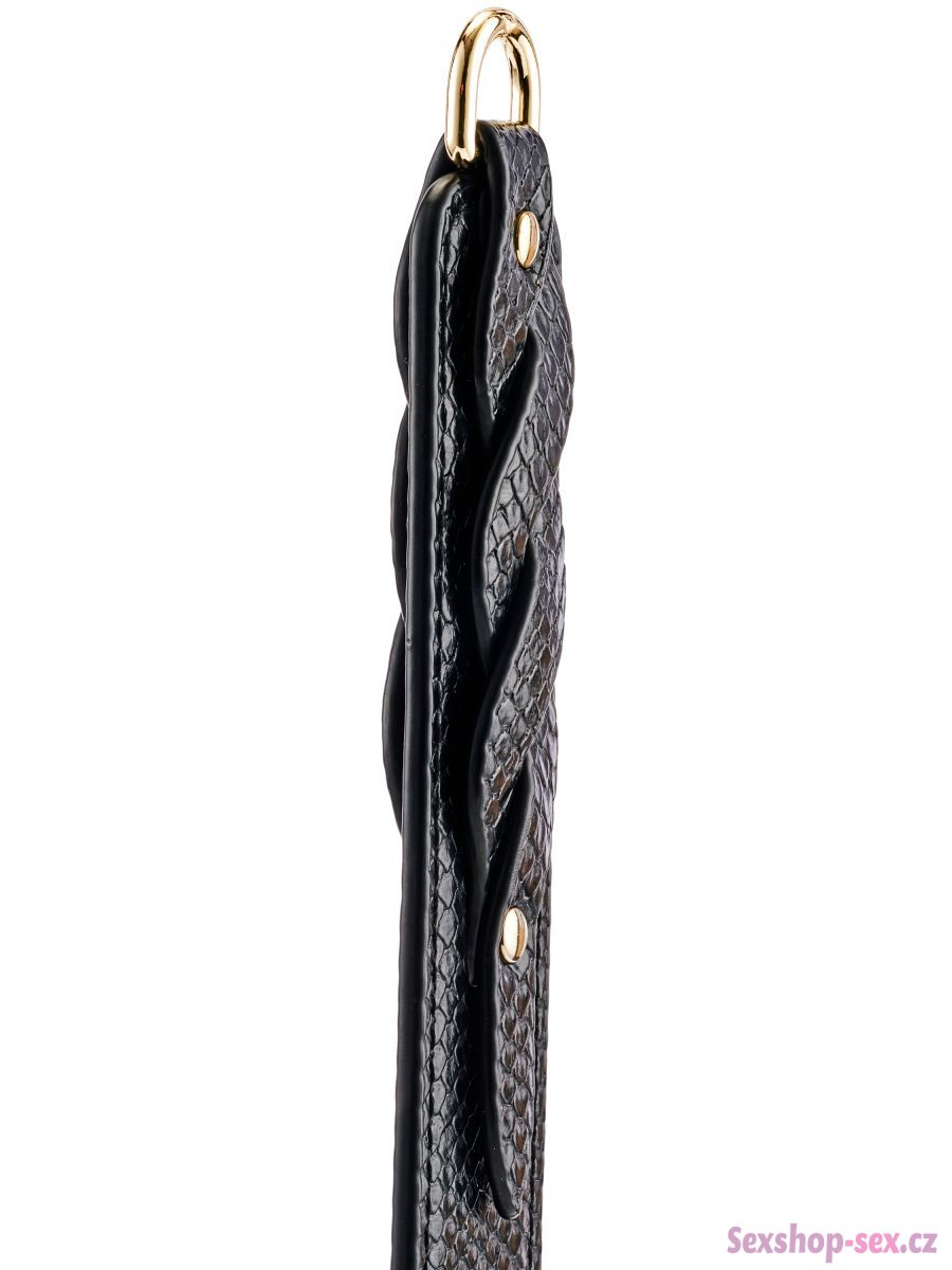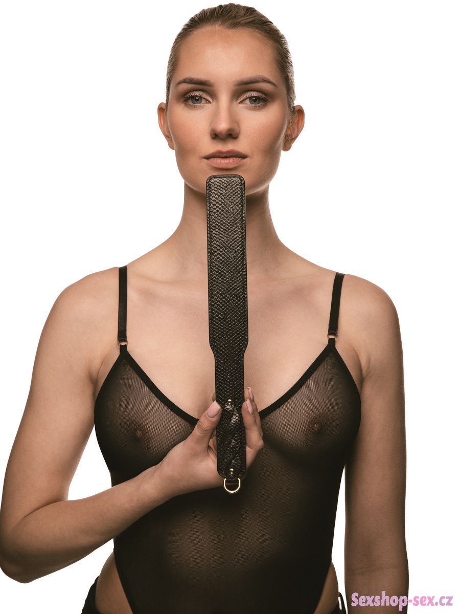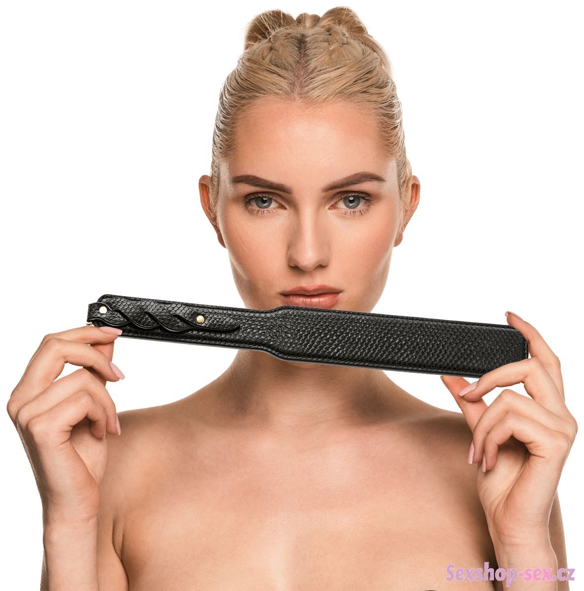 Plácačka je vyrobená z texturované umělé kůže. Rukojeť má zdobenou pletením – poslouží jako elegantní pomůcka pro něžné a stylové BDSM hry.