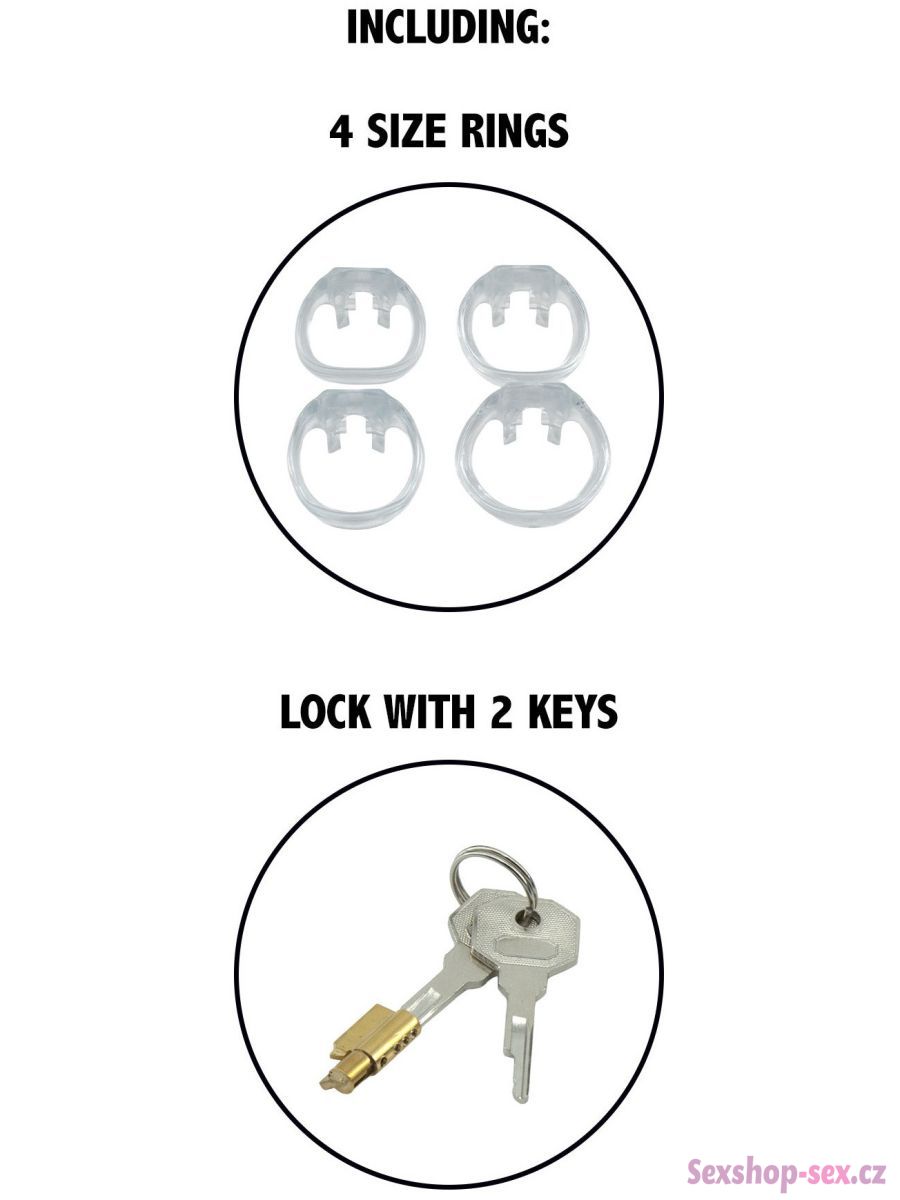 Snadno ji nasadíte na penis, zasunete zámek a otočením klíčku zamknete. Pak už stačí jen schovat klíč (ke klícce dostanete celkem 2 klíčky).