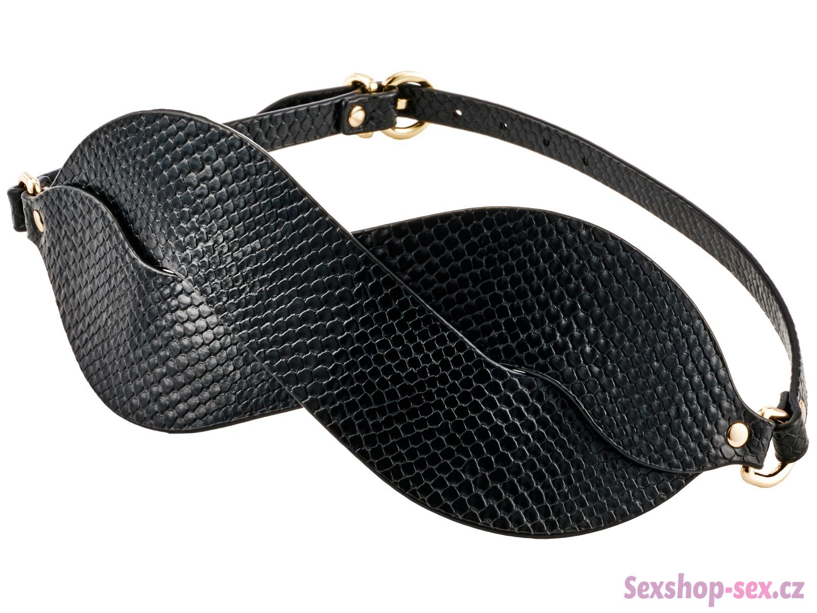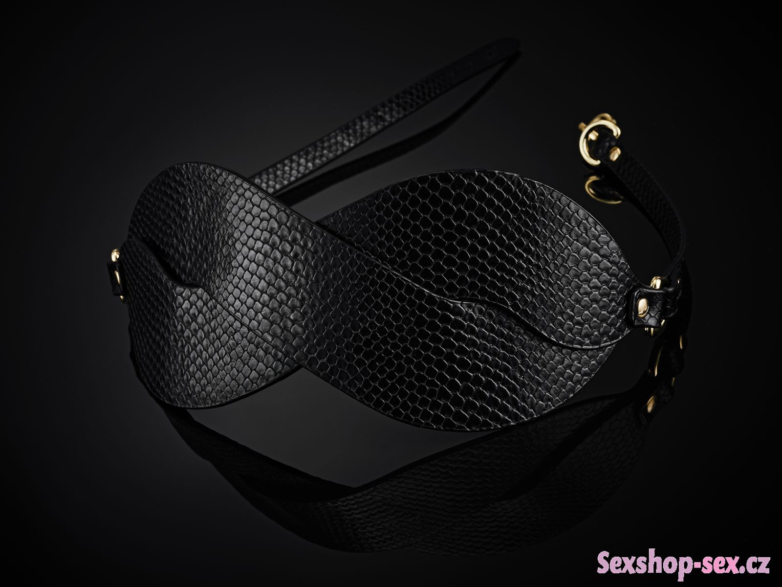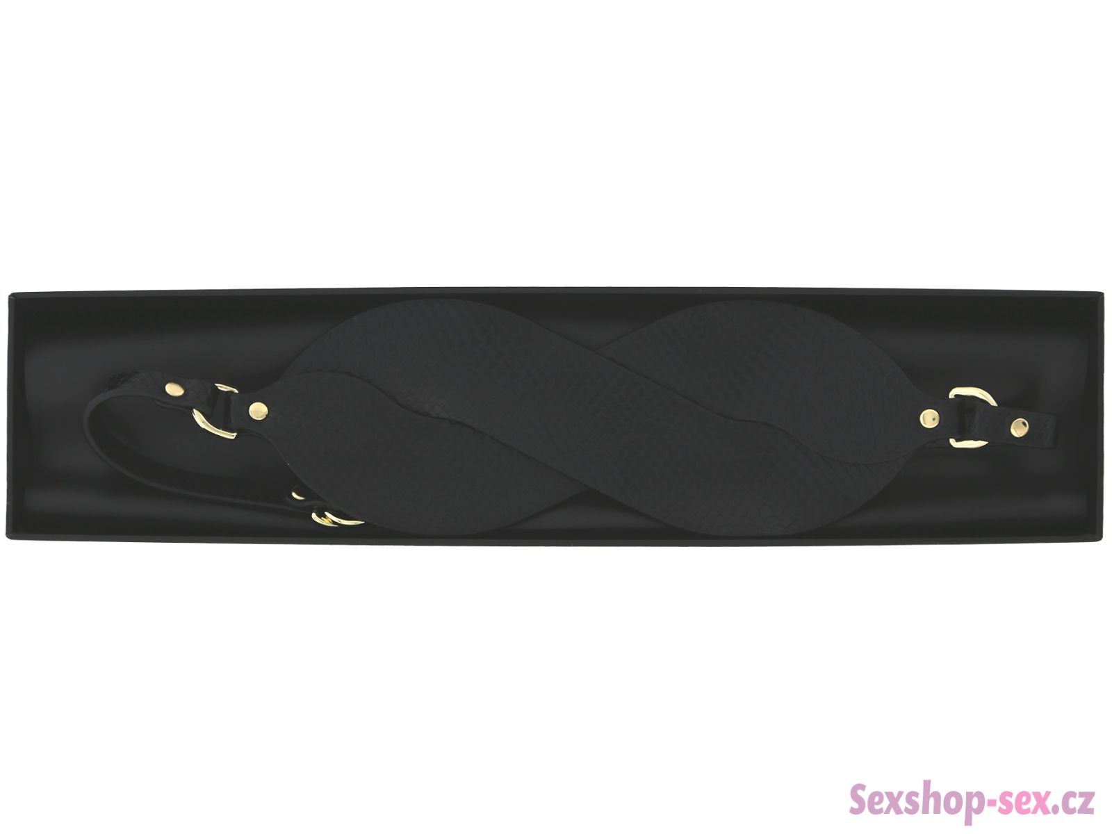 Maska má pletený texturovaný design a zlaté detaily – poslouží jako elegantní pomůcka pro něžné a stylové BDSM dovádění a hru se smysly.