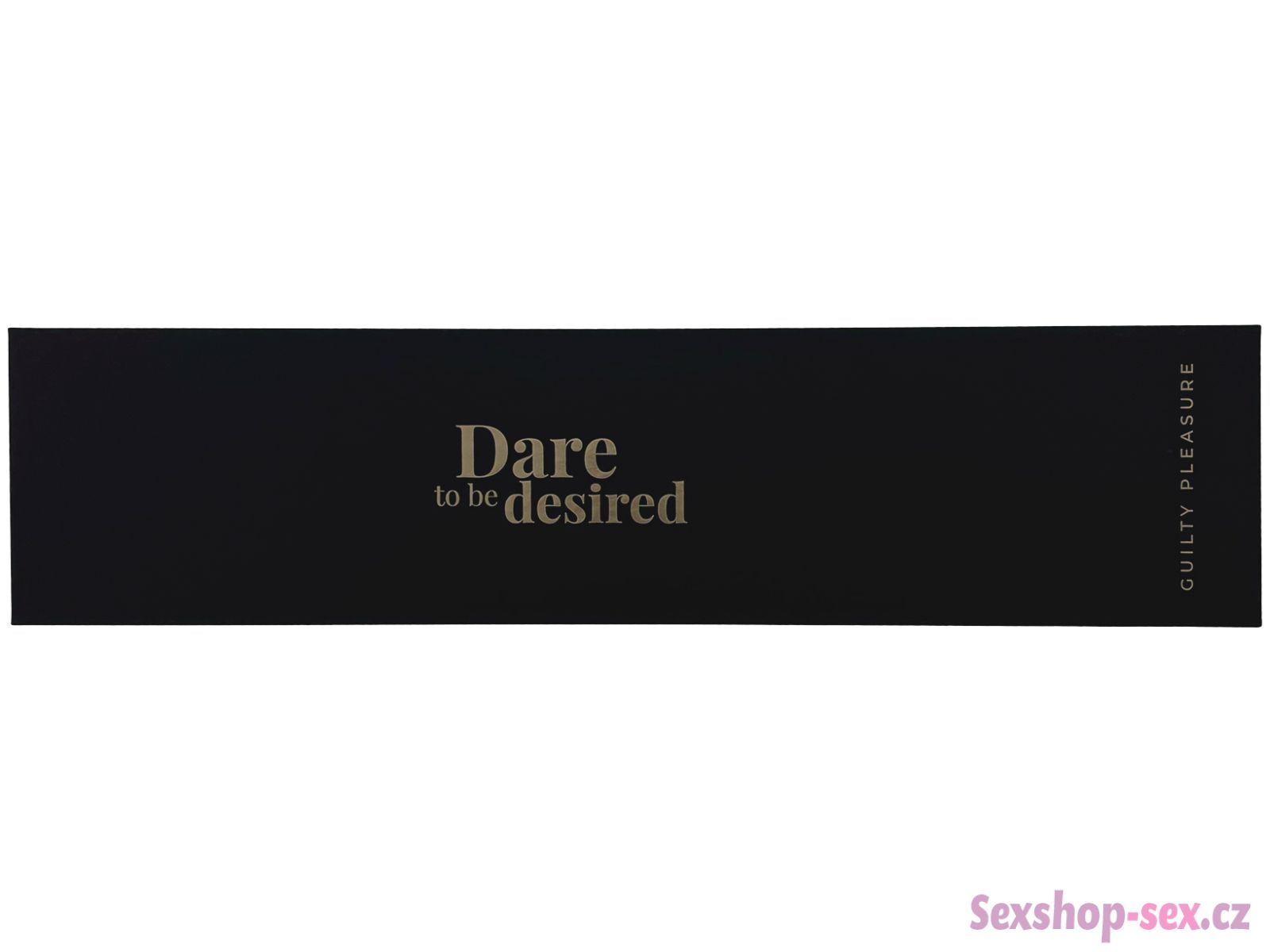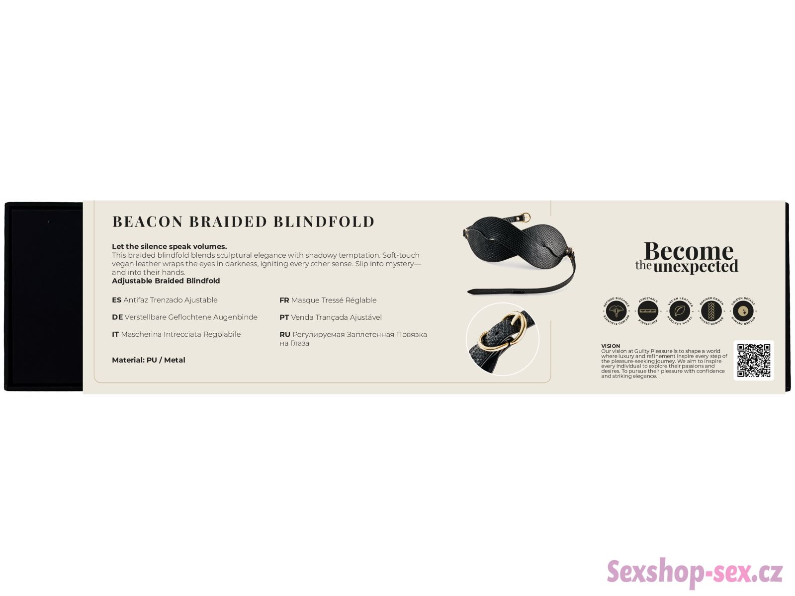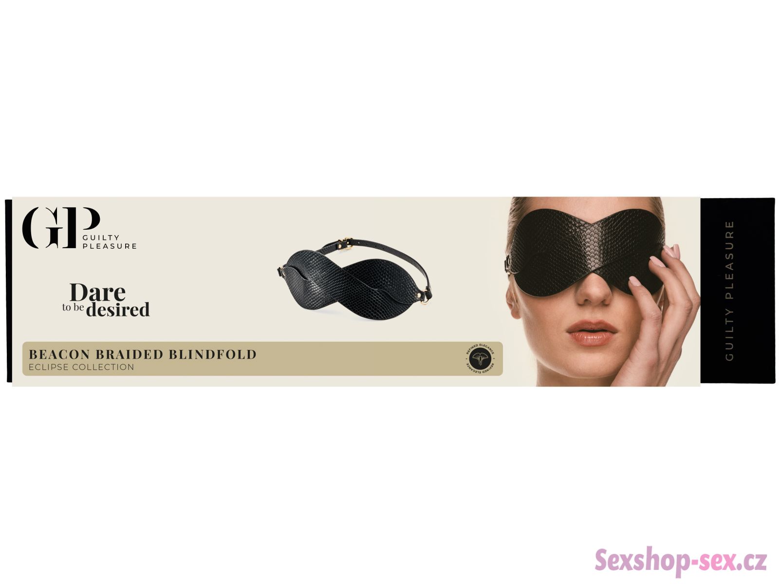 Maska má pletený texturovaný design a zlaté detaily – poslouží jako elegantní pomůcka pro něžné a stylové BDSM dovádění a hru se smysly.