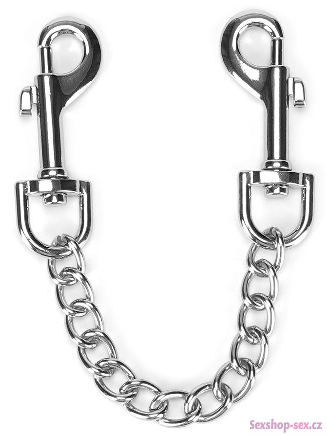 TIP: Řetízek lze snadno odepnout, takže pouta můžete použít i s jinými bondage pomůckami, třeba roztahovací tyčí.