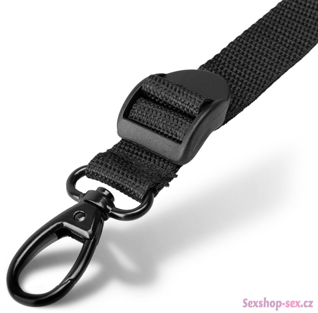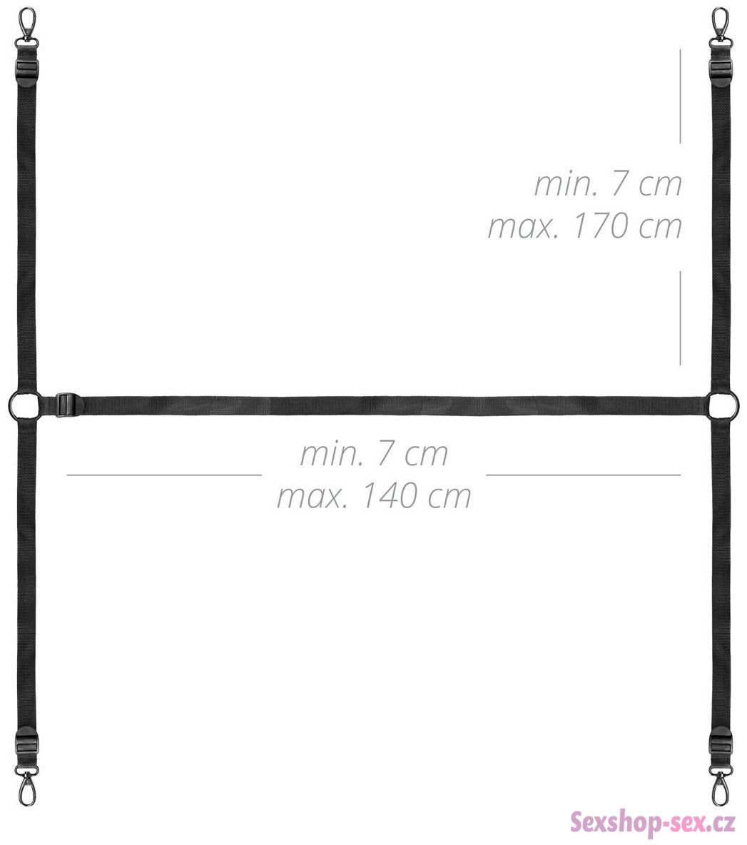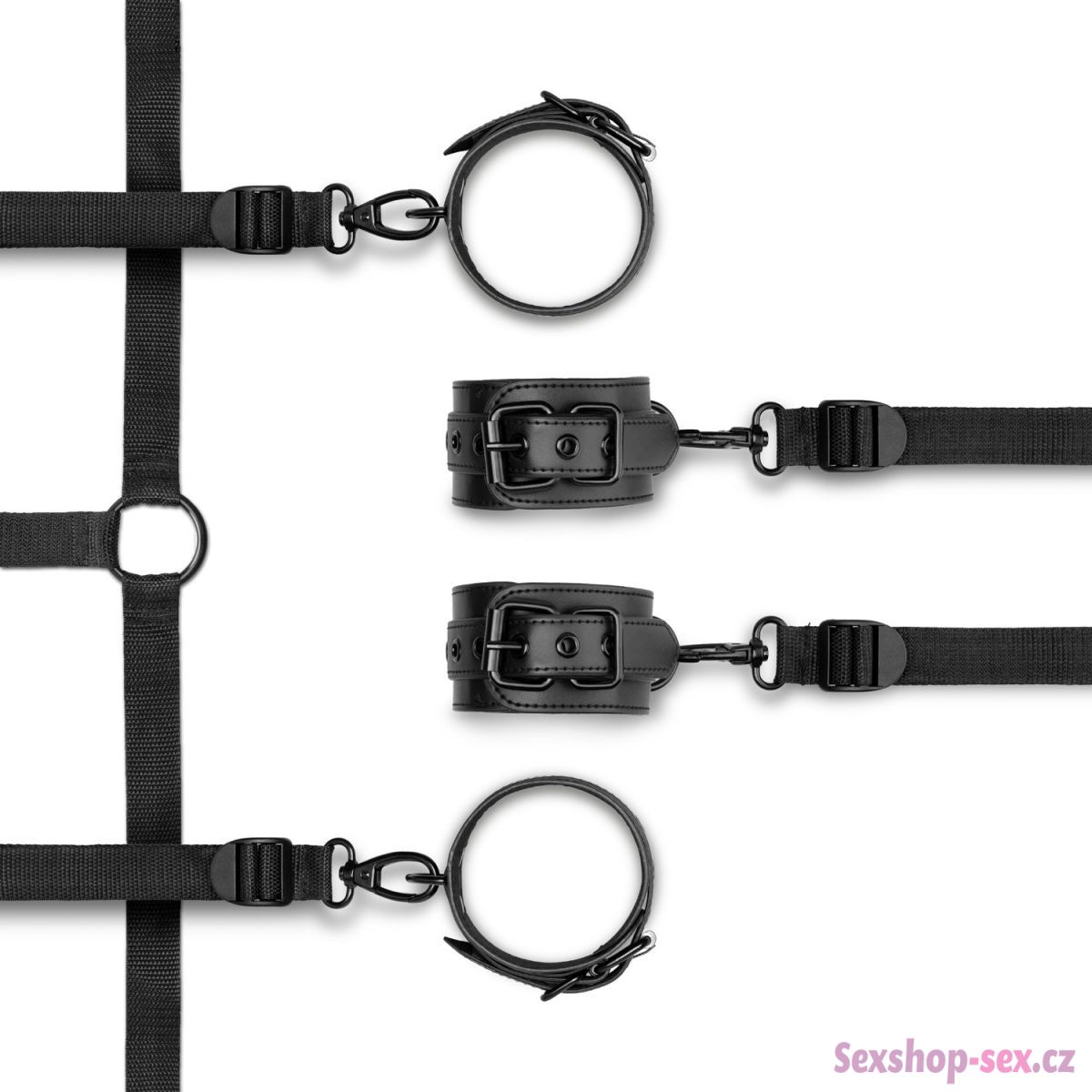 Pouta jsou k popruhům připevněna pomocí rychloupínacích karabinek (karabinky jsou připevněny k popruhům) – pouta můžete připnout i k jiným BDSM pomůckám.