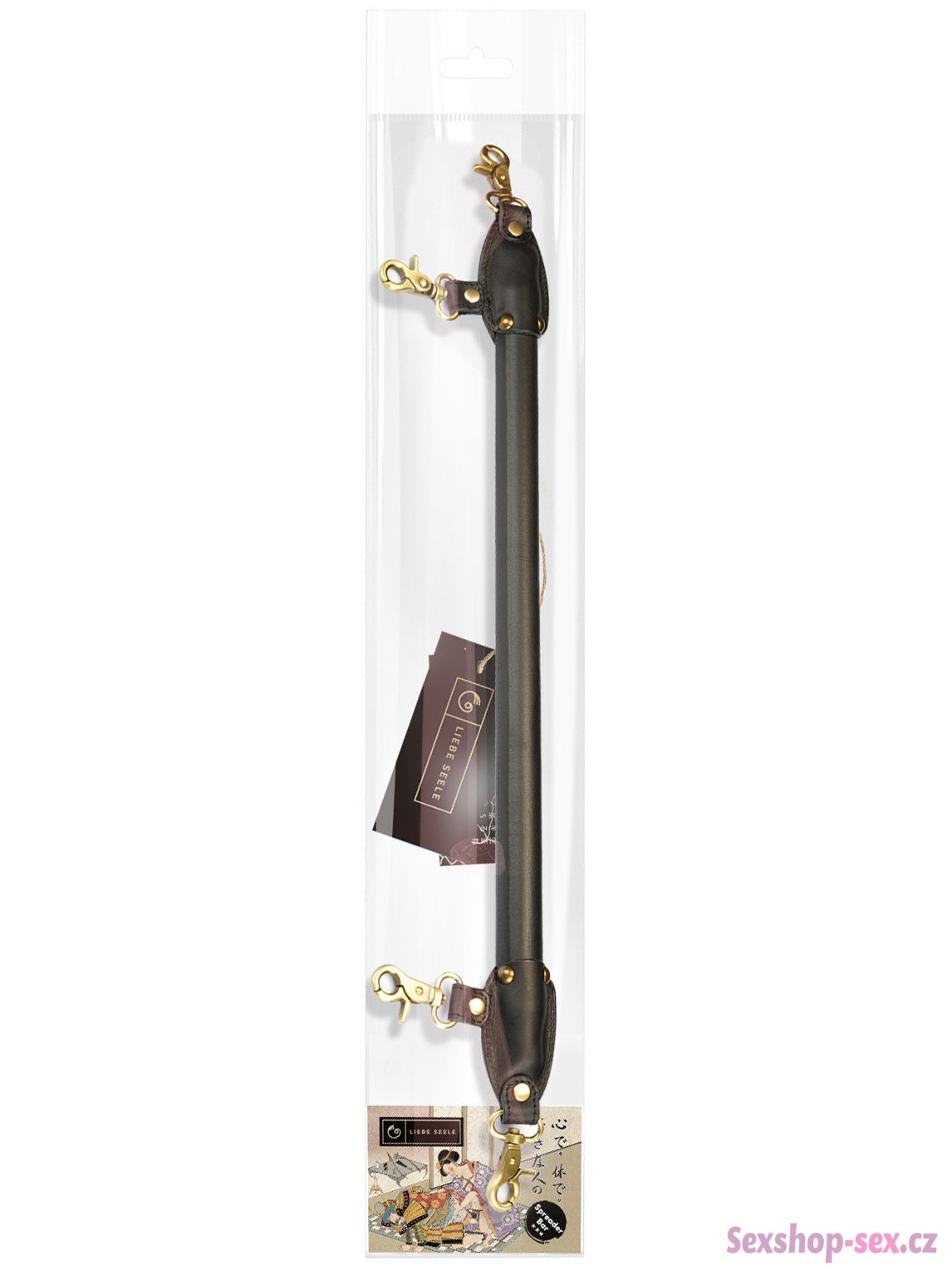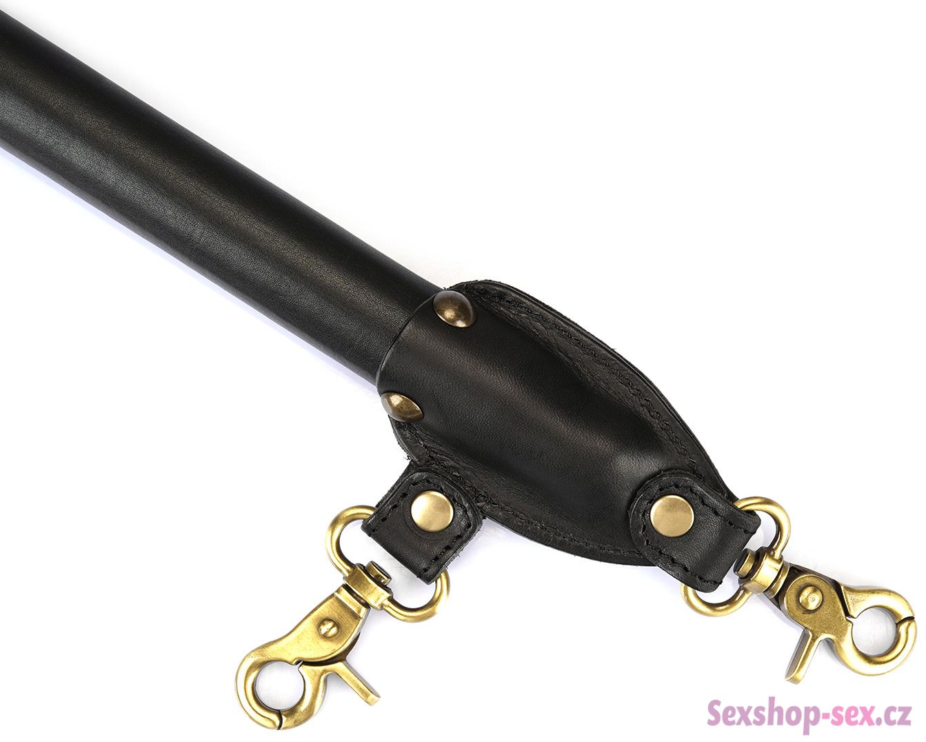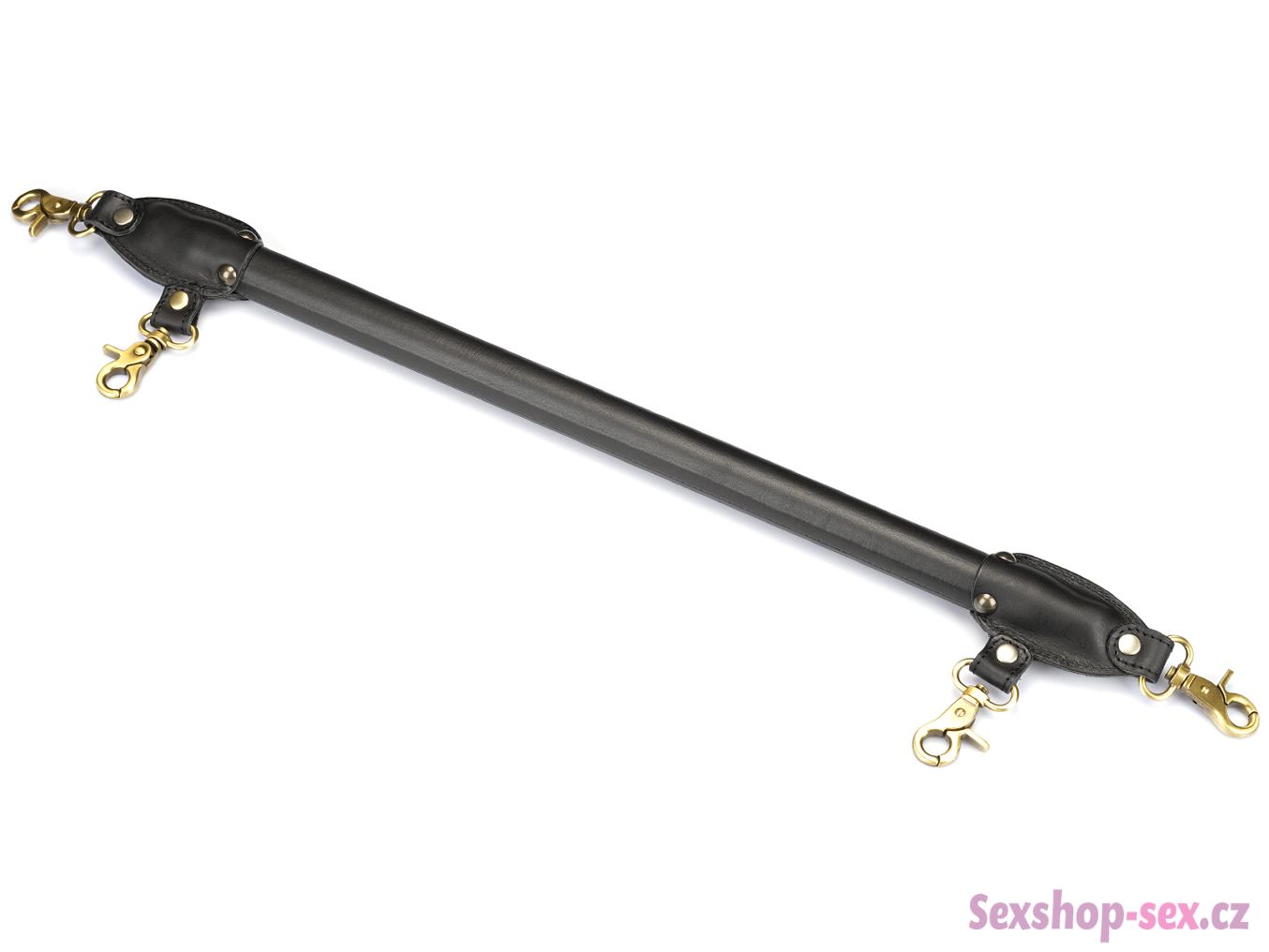 Roztahovací tyč je vyrobená z kovu potaženého tlustou hovězí kůží. Má celkem 4 rychloupínací karabiny pro připnutí libovolných pout na ruce či nohy.