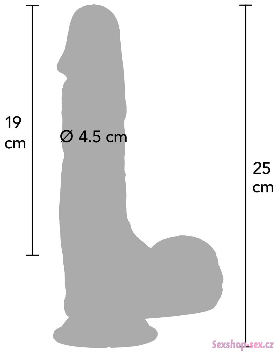 - Rozměry: celková délka 25 cm (včetně přísavky), zasunutelná délka 19 cm, max. průměr 4,5 cm