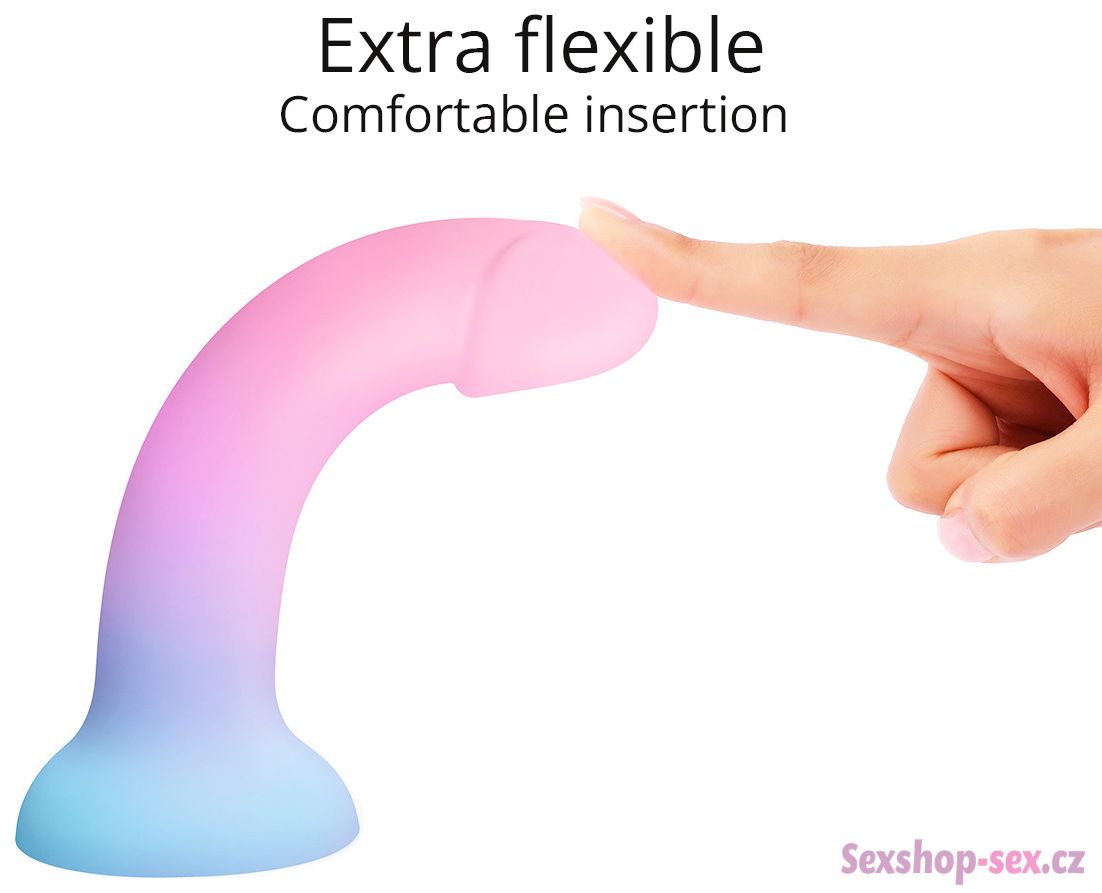 Je měkké a ohebné a vyrobené z tzv. "tekutého" silikonu, který je bezpečný pro lidské tělo. Díky své pružnosti se dildo snadno přizpůsobí vašim vnitřním křivkám, ale zároveň se snadno zasouvá.