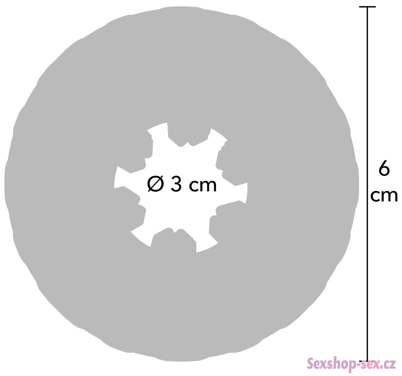 - Rozměry: vnější průměr 6 cm, vnitřní průměr 3 cm