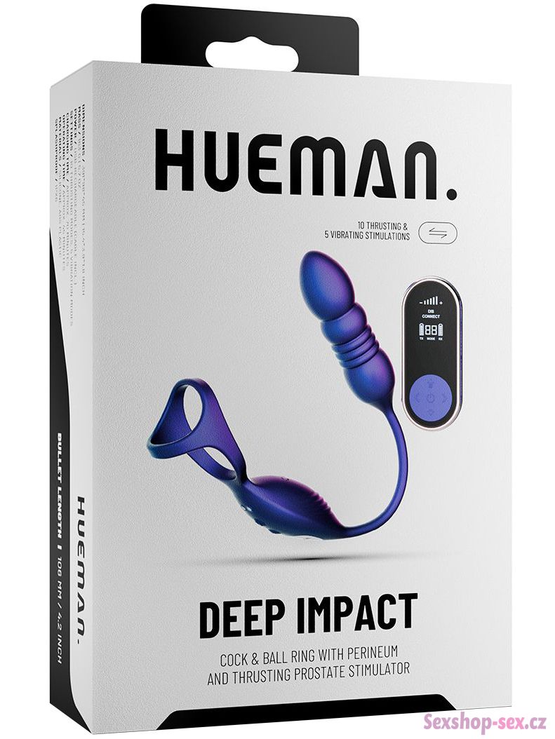 Kroužek na penis s přirážecím análním vibrátorem Deep Impact (Hueman)