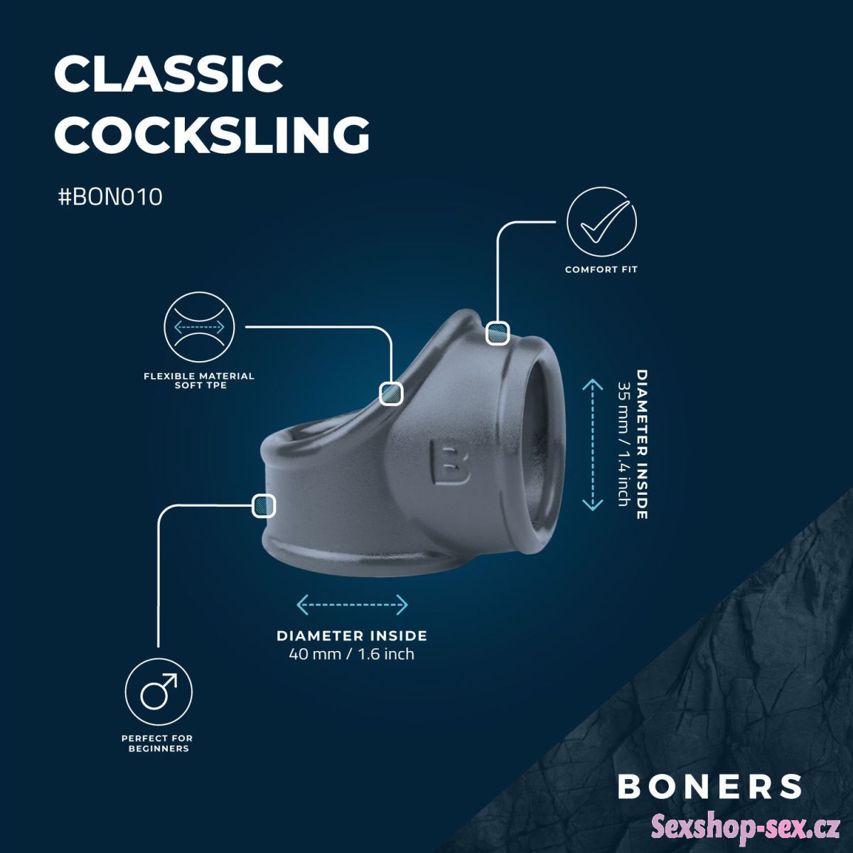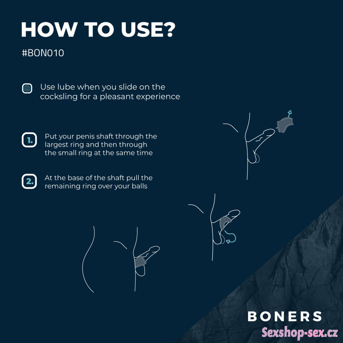 Postroj slouží pro současné zaškrcení penisu a varlat a zviditelnění genitálií. Díky zaškrcení se penis mírně zvětší a navíc si užijete lepší a déletrvající erekci.