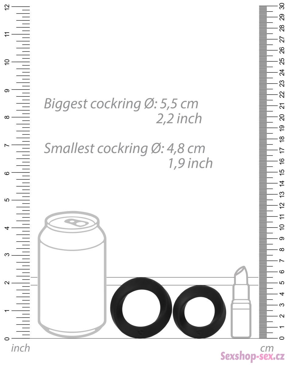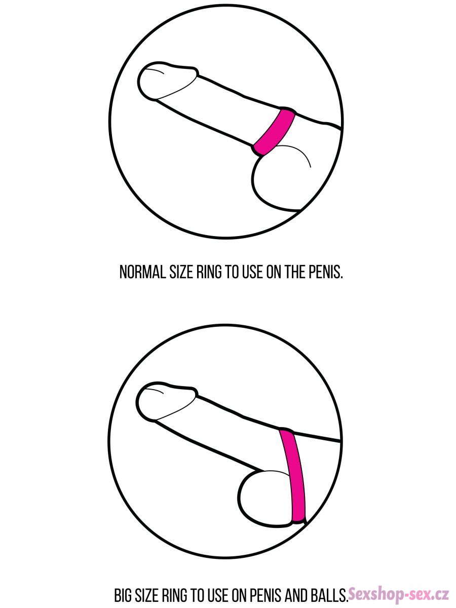 Sada obsahuje 2 kroužky o různém průměru – menší kroužek se hodí na zaškrcení samotného penisu, větší na zaškrcení penisu a varlat najednou.