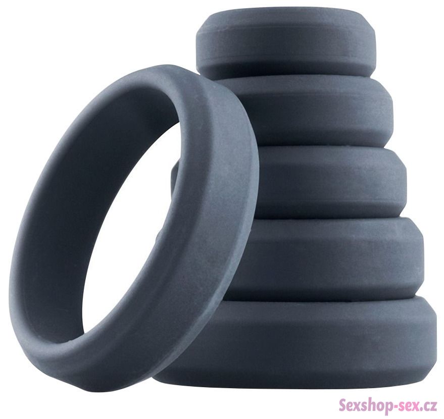 Sada obsahuje 6 kroužků o různém průměru – snadno si přizpůsobíte míru zaškrcení a můžete zaškrtit penis, varlata i obojí najednou.