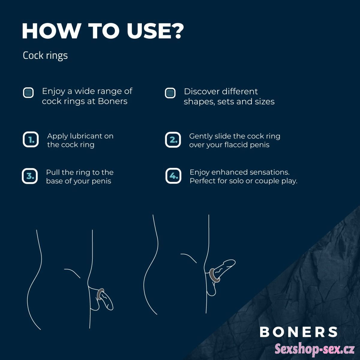 Kroužky jsou měkké, hladké a pružné, takže vždy perfektně padnou a pohodlně se nosí. Zároveň poskytnou kvalitní zaškrcení a pomůžou k lepší a déletrvající erekci.