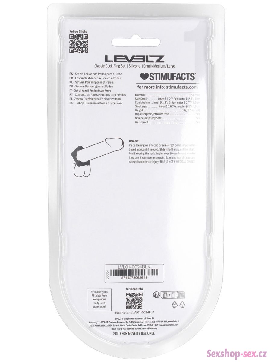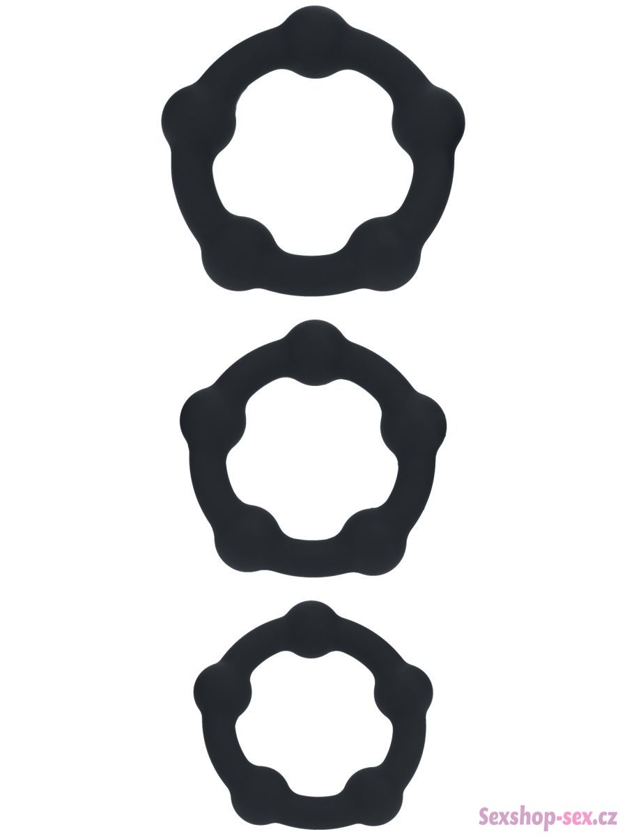 V sadě najdete 3 erekční kroužky různého průměru. Jsou vyrobené z pružného silikonu a mají stimulační kuličky pro intenzivnější potěšení.