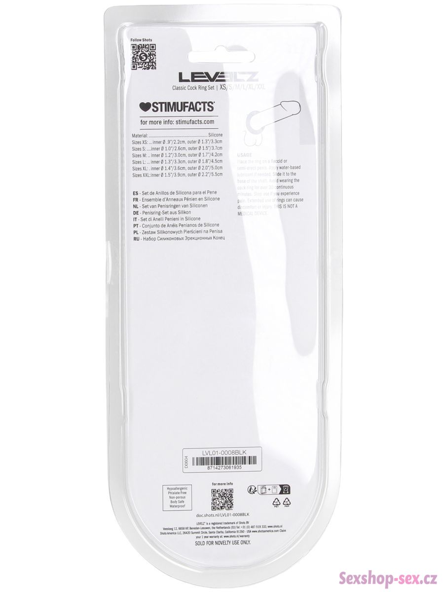 Sada obsahuje 6 kroužků o různém průměru. Můžete jimi zaškrtit penis i varlata a různě je kombinovat, abyste dosáhli optimálního zaškrcení a lepší erekce.