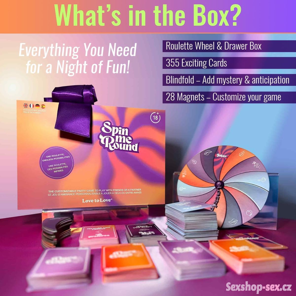 - Balení obsahuje: ruletové kolo, 28 magnetů, 355 herních karet, šátek na oči