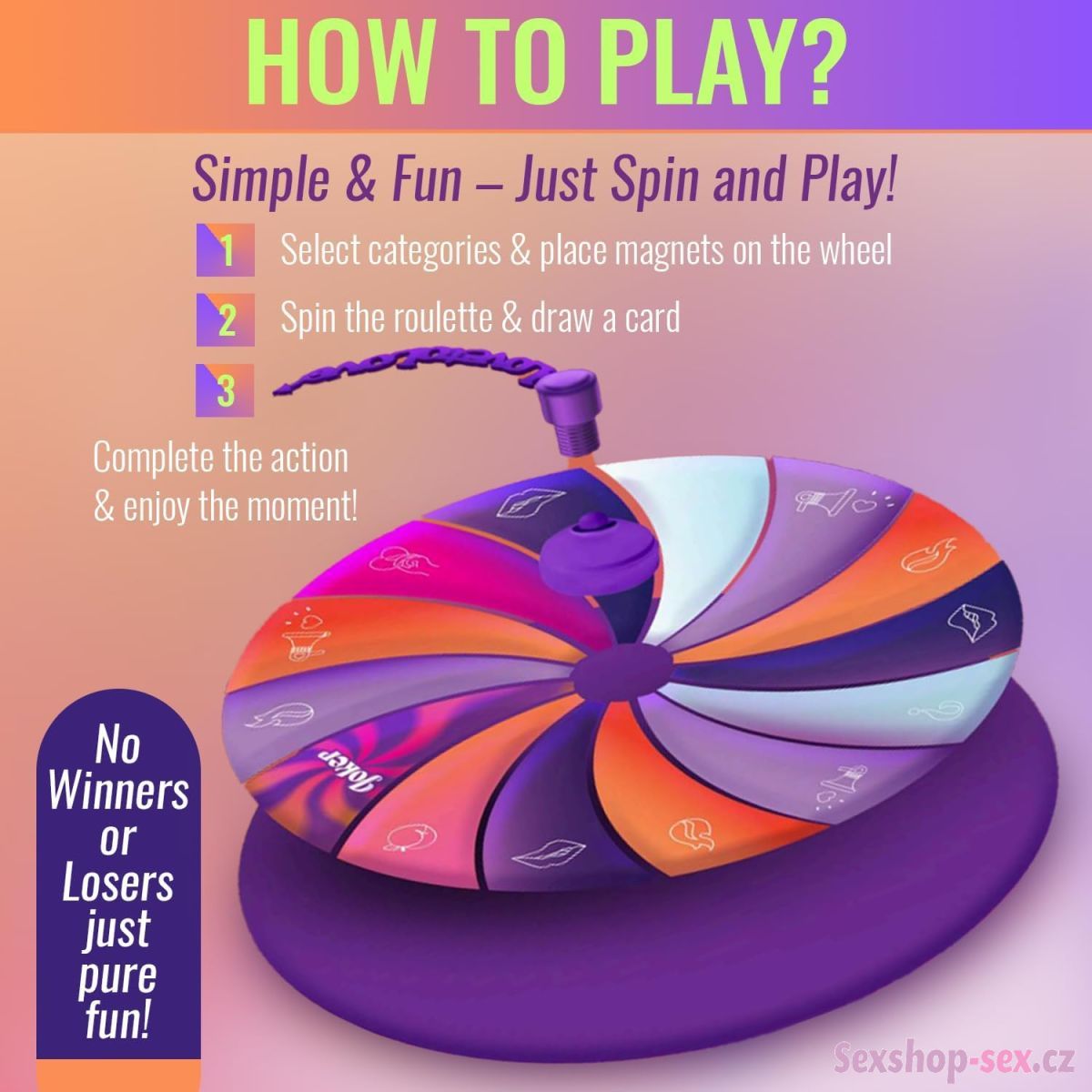 Hra nemá žádného vítěze ani poražené a pravidla jsou jednoduchá. Po výběru kategorií a umístění magnetů na ruletové kolo jednoduše roztočíte šipku a provedete akci odpovídající políčku.