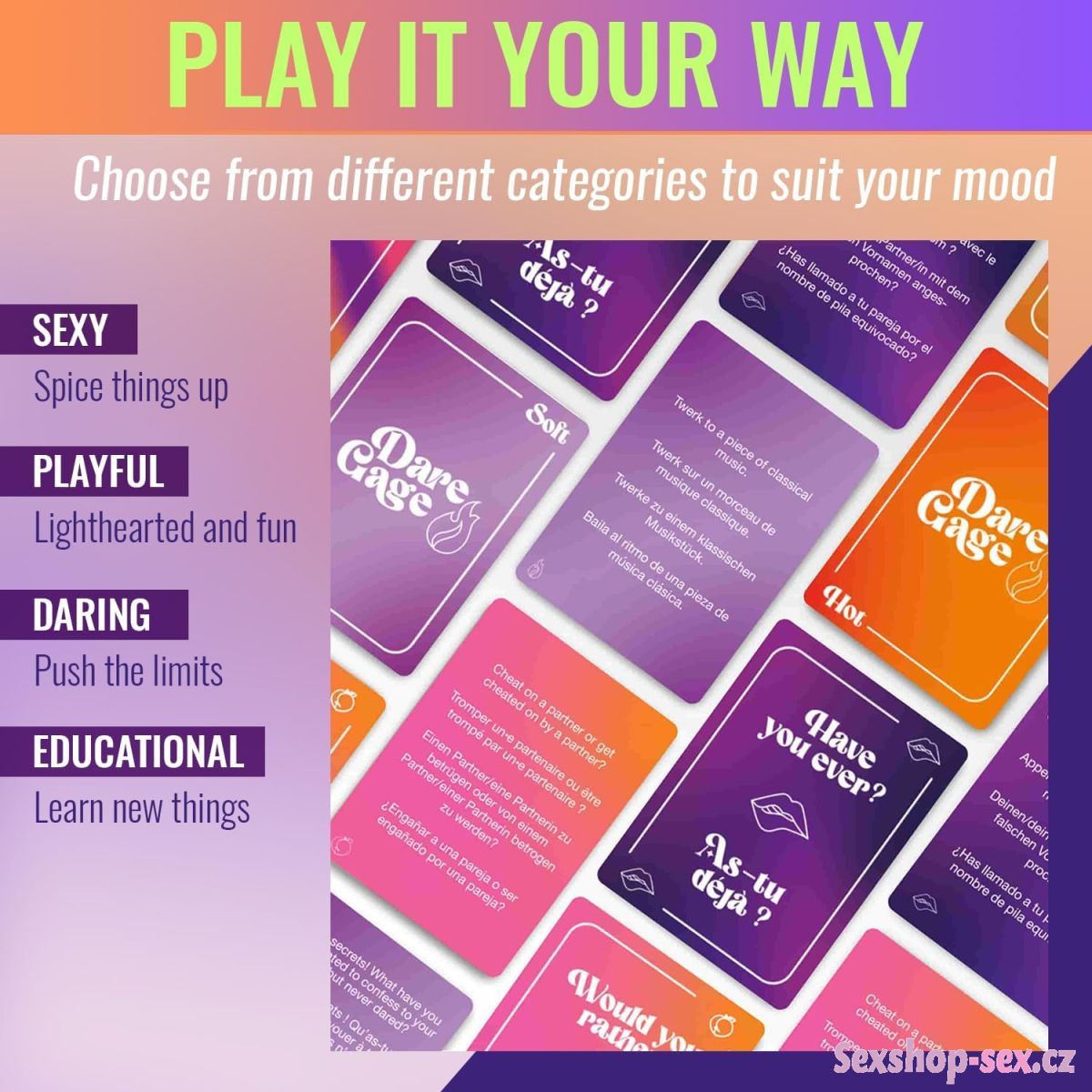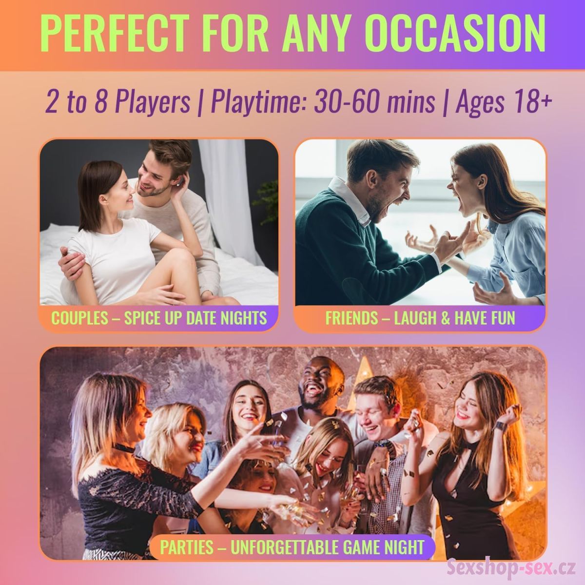 Hra je určená pro 2 až 8 hráčů, takže si ji užijete v páru i s partou dobrých přátel. Okoření společné chvíle, odhalí vaše nejniternější tajemství a dozvíte se různá sexuální fakta.