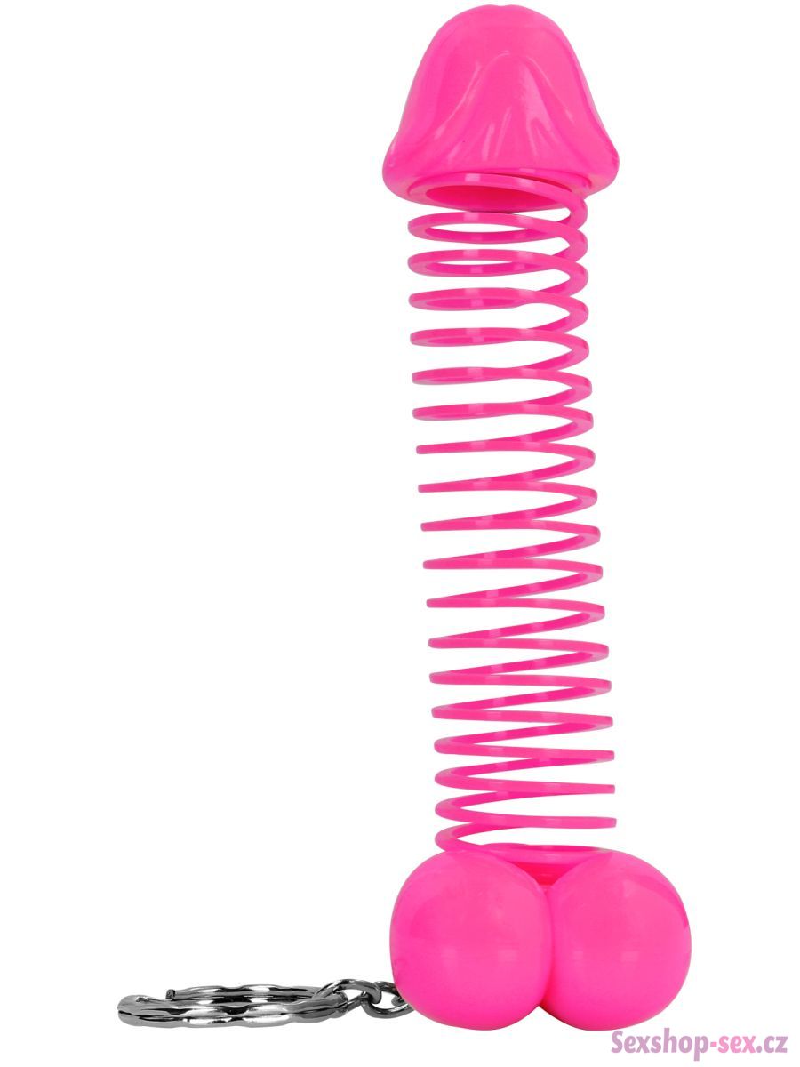Klíčenka má tvar penisu a kroužek na pověšení. Díky pružince mezi žaludem a varlaty se penis vtipně pohupuje a můžete ho i natahovat.