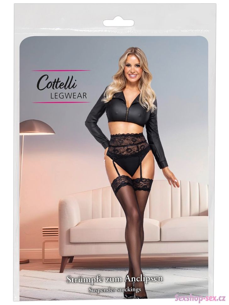 Punčochy s krajkovým lemem - černé (Cottelli)