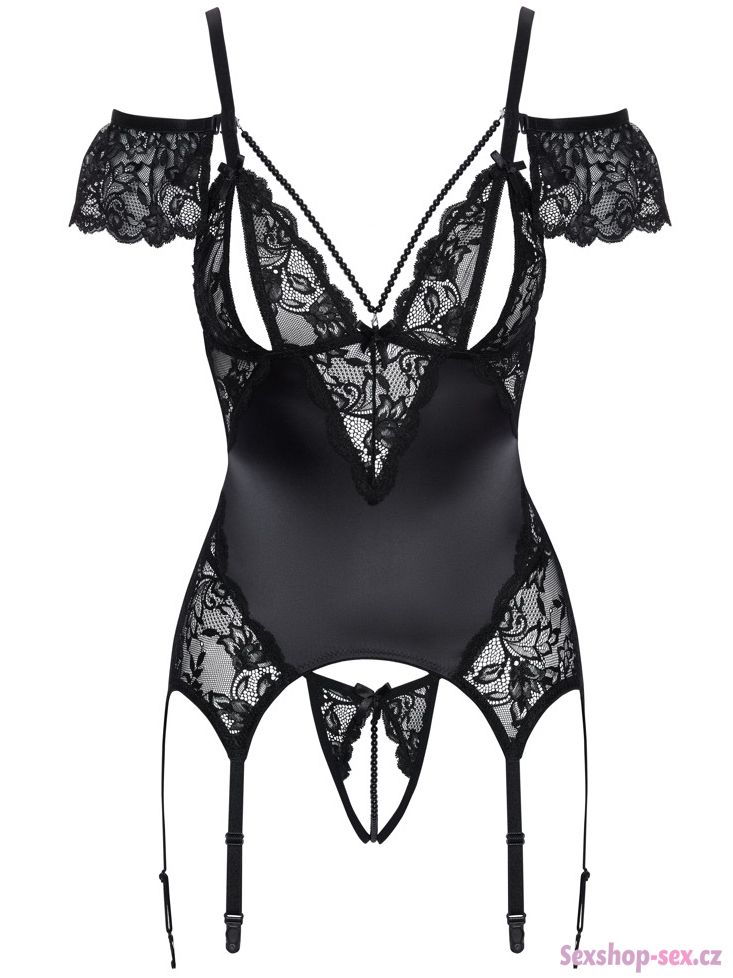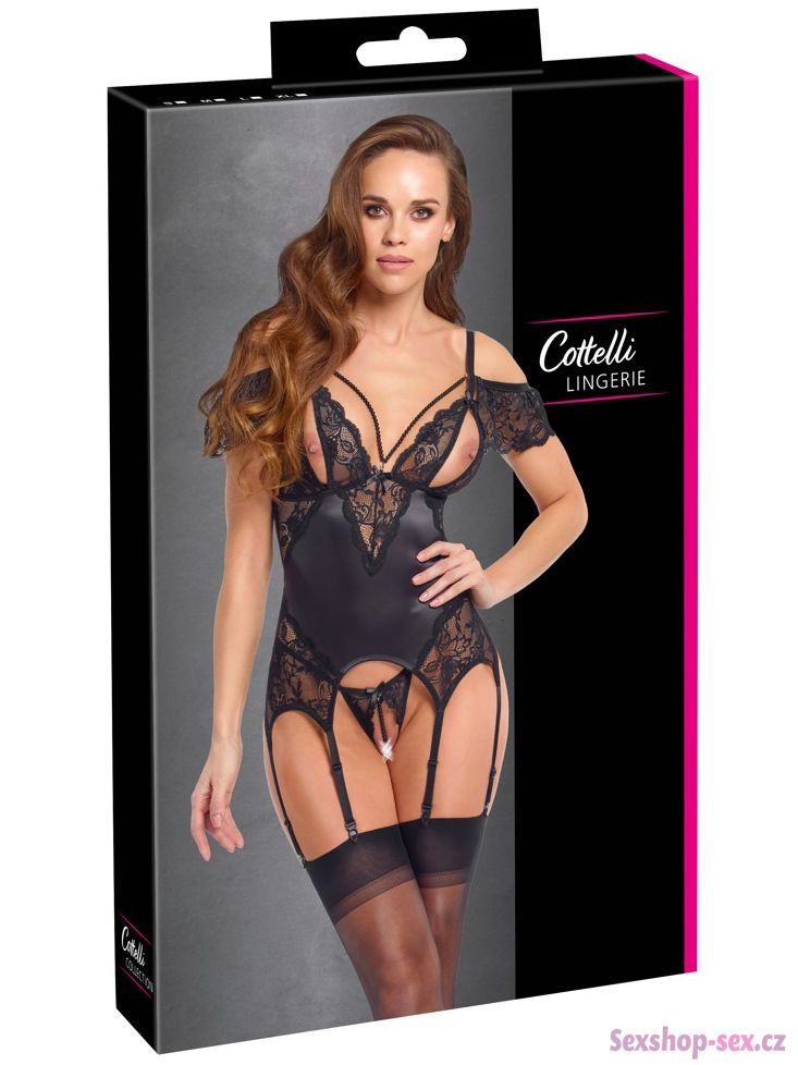 Top s podvazky + tanga s otevřeným rozkrokem (Cottelli)
