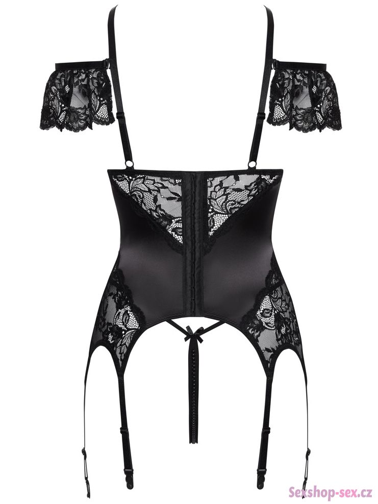 Je ušitý z kombinace saténově lesklé látky a květinové krajky. Oba materiály jsou příjemně měkké a elastické, takže se top pohodlně nosí. 6 podvazkových pásků je délkově nastavitelných a připnete k nim prakticky jakékoliv punčochy.