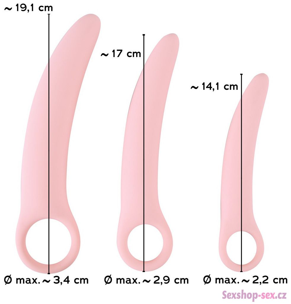 Sada obsahuje 3 různě velké dilatátory (dilda), které jsou ideální pro postupné a bezbolestné roztahování vaginy a zmírnění příznaků vaginismu.