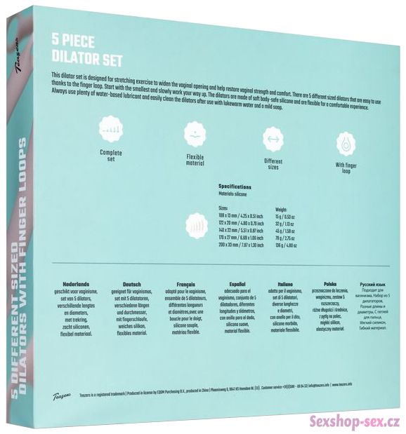 Sada obsahuje 5 různě velkých dilatátorů (dild), které jsou ideální pro postupné a bezbolestné roztahování vaginy a zmírnění příznaků vaginismu.