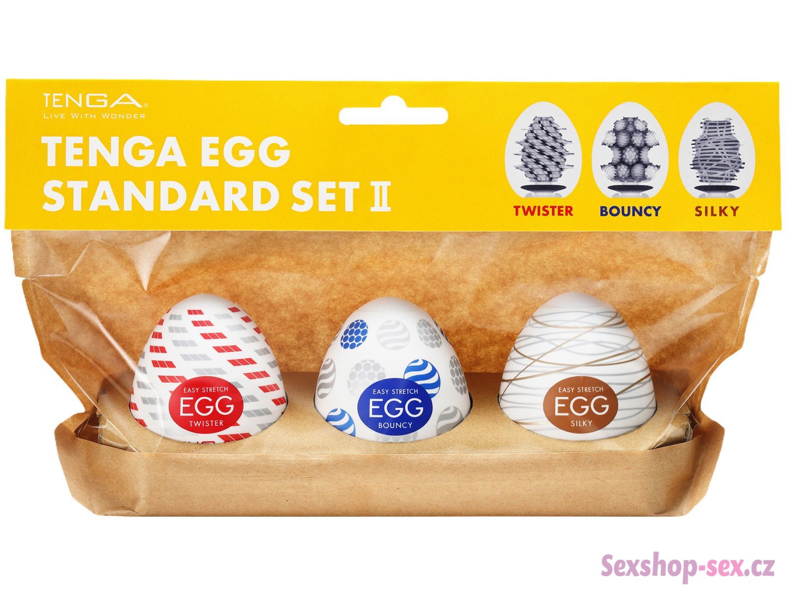 Sada obsahuje 3 masturbační vajíčka s rozdílnou stimulační texturou (Twister, Bouncy a Silky). Jsou měkká a elastická – přizpůsobí se jakékoliv velikosti penisu a stimulují ho v celé jeho délce.