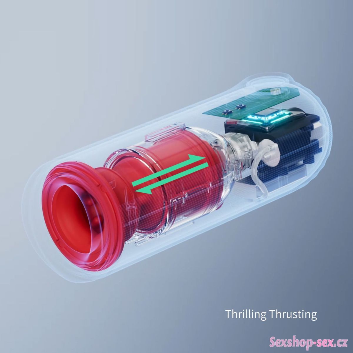 Inteligentní systém přírazů napodobuje přirozené sexuální rytmy, zatímco kontrakce a vibrace poskytují těsné a různorodé pocity, které posouvají masturbaci na novou úroveň rozkoše.
