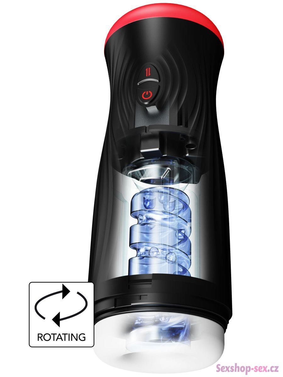 Masturbátor má rotační motor, který kombinuje přírazy a 360° rotace – díky tomu poskytne stimulaci penisu po celé jeho délce.