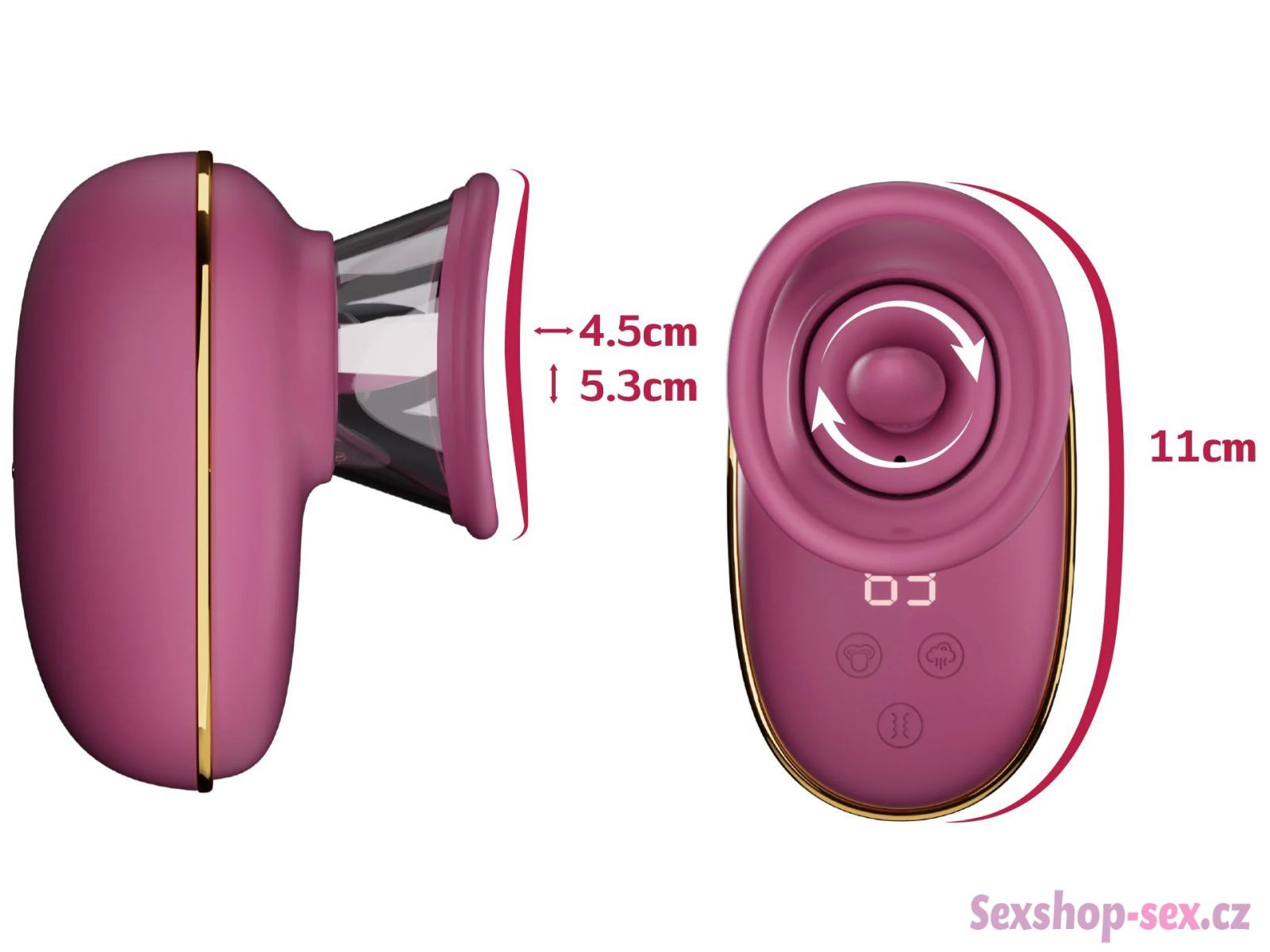 Stimulátor potěší klitoris vibracemi, sáním a rotačním jazýčkem. Díky podtlaku se klitoris více prokrví, čímž se zvýší jeho citlivost. Stimulaci si tak užijete mnohem více.