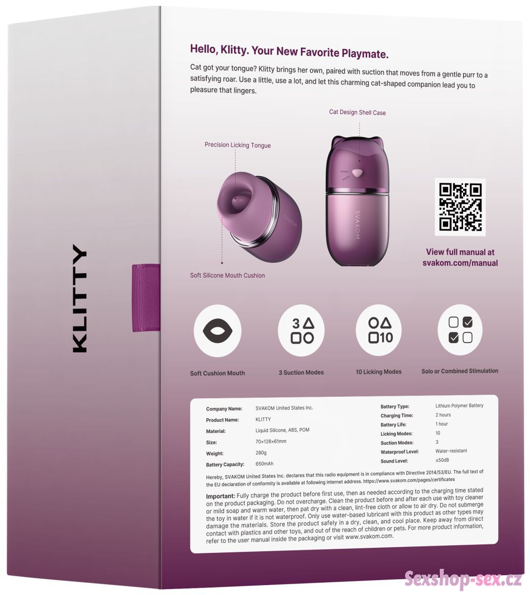 Stimulační část včetně jazýčku je z měkkého silikonu, který je bezpečný pro lidské tělo a příjemný na omak.