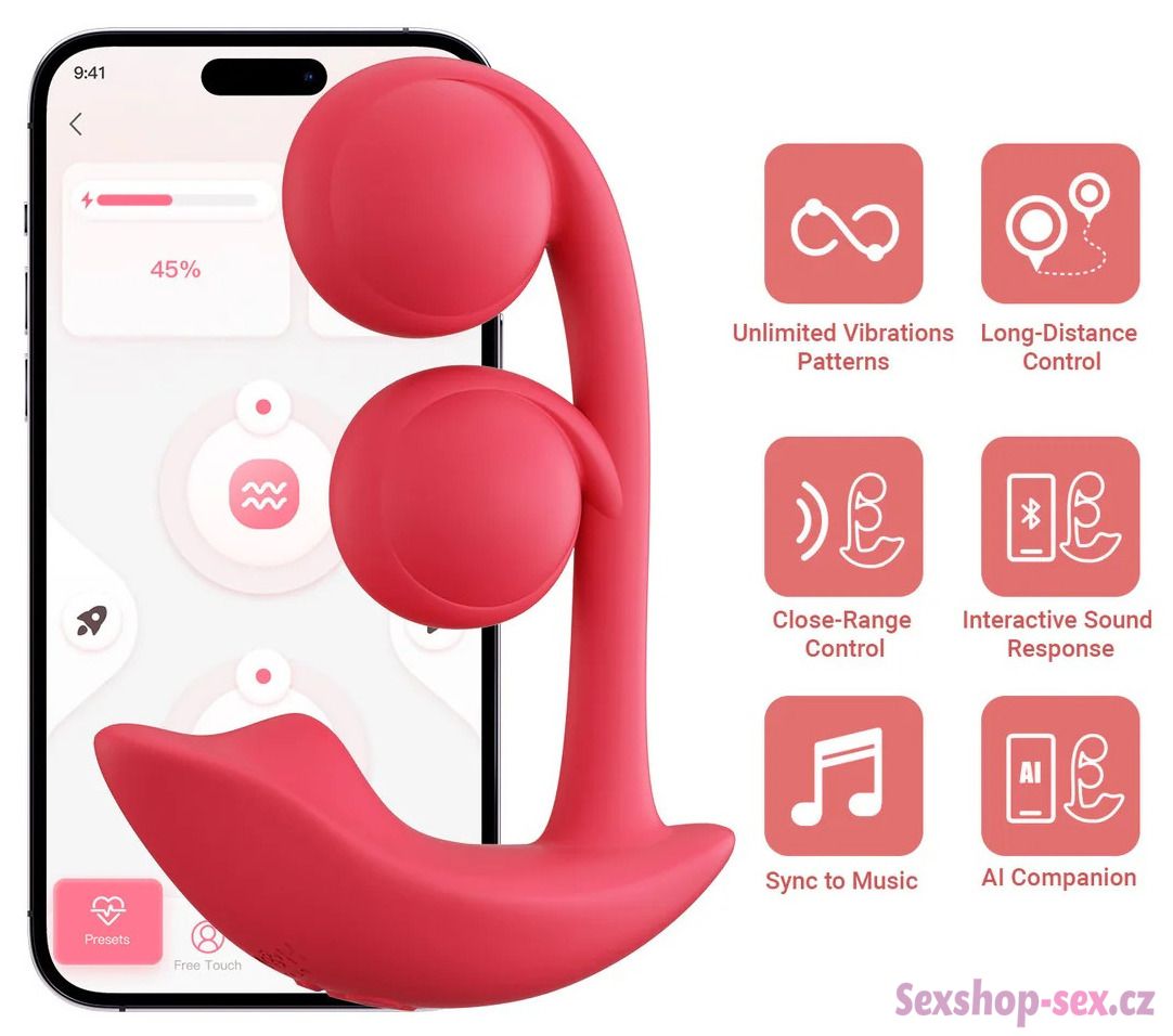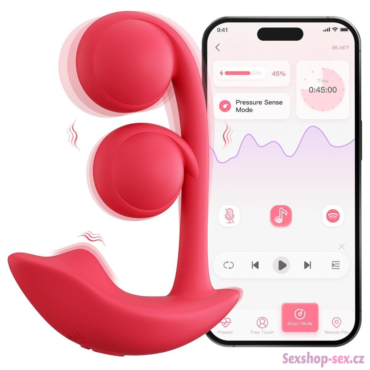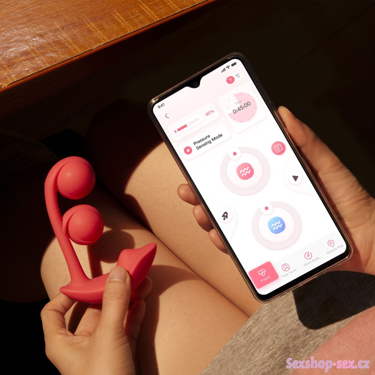Vibrátor diskrétně provibruje bod G a klitoris, ať už se vydáte kamkoliv. Má snímač tlaku a můžete ho ovládat mobilem.