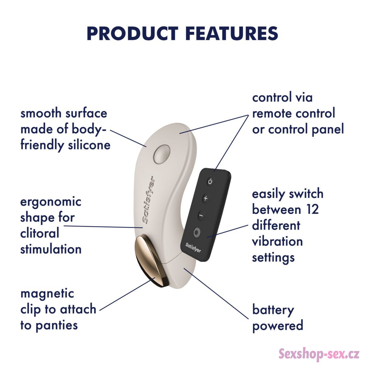 Vibrátor má magnet pro upnutí do kalhotek – užijete si diskrétní potěšení klitorisu doma i venku. Dá se ovládat dálkovým ovladačem, takže je ideální na párové hry.