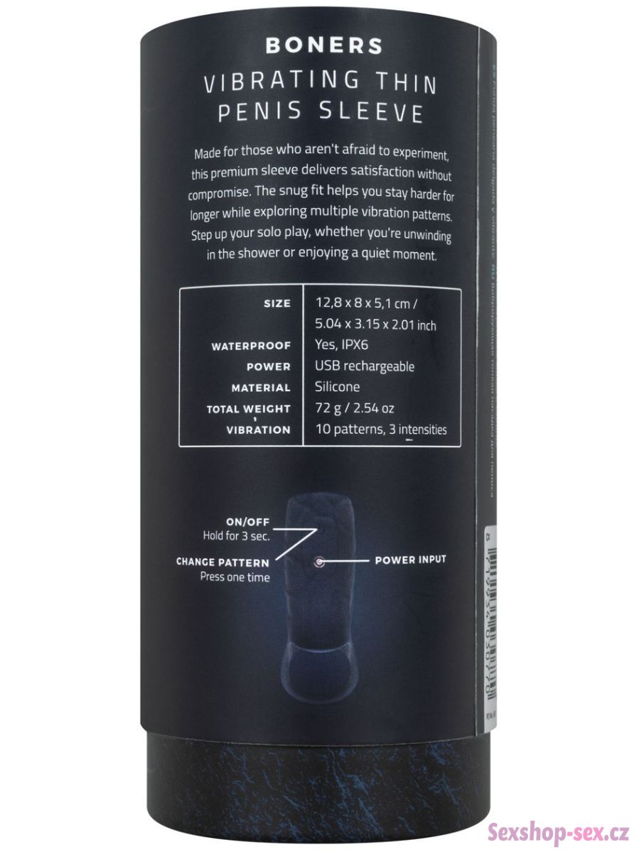 Mírně rozšíří penis, na povrchu má jemně naznačené žilkování pro extra stimulaci a je otevřený, takže nezakrývá žalud a nesnižuje jeho citlivost.