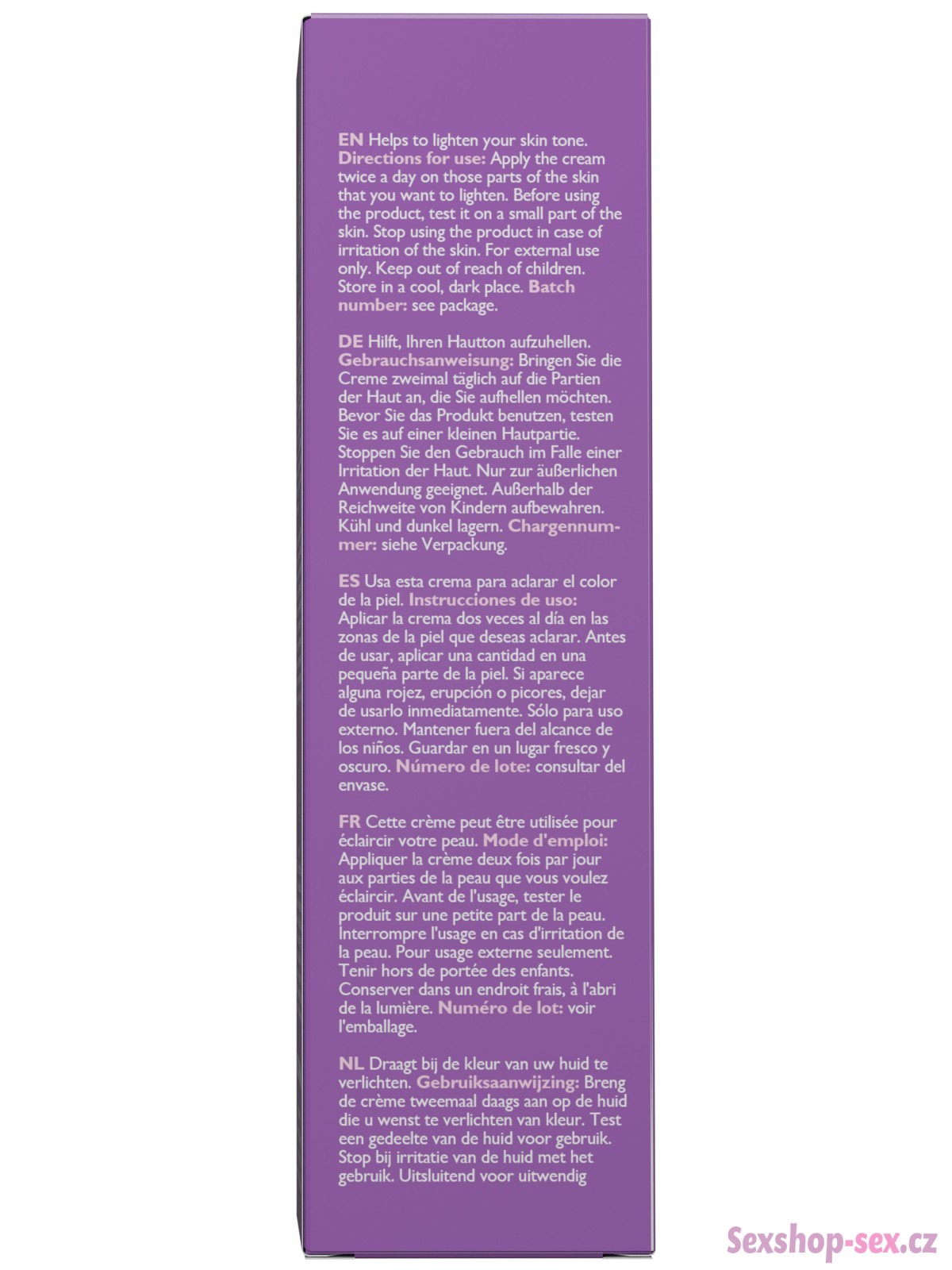 Tento bělicí krém byl vyvinutý pro tu nejcitlivější pokožku v okolí vaginy a zadečku, kterou zanechává příjemně hydratovanou, rozjasněnou a vyživenou. Díky jemné struktuře se snadno roztírá.