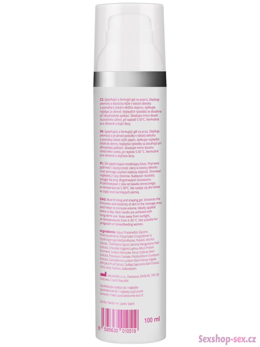 Gel obsahuje 4 komplexy účinných látek, u kterých studie prokázaly pozitivní vliv na zpevnění a vyhlazení kůže v oblasti dekoltu, zlepšení elasticity a zvětšení objemu poprsí.