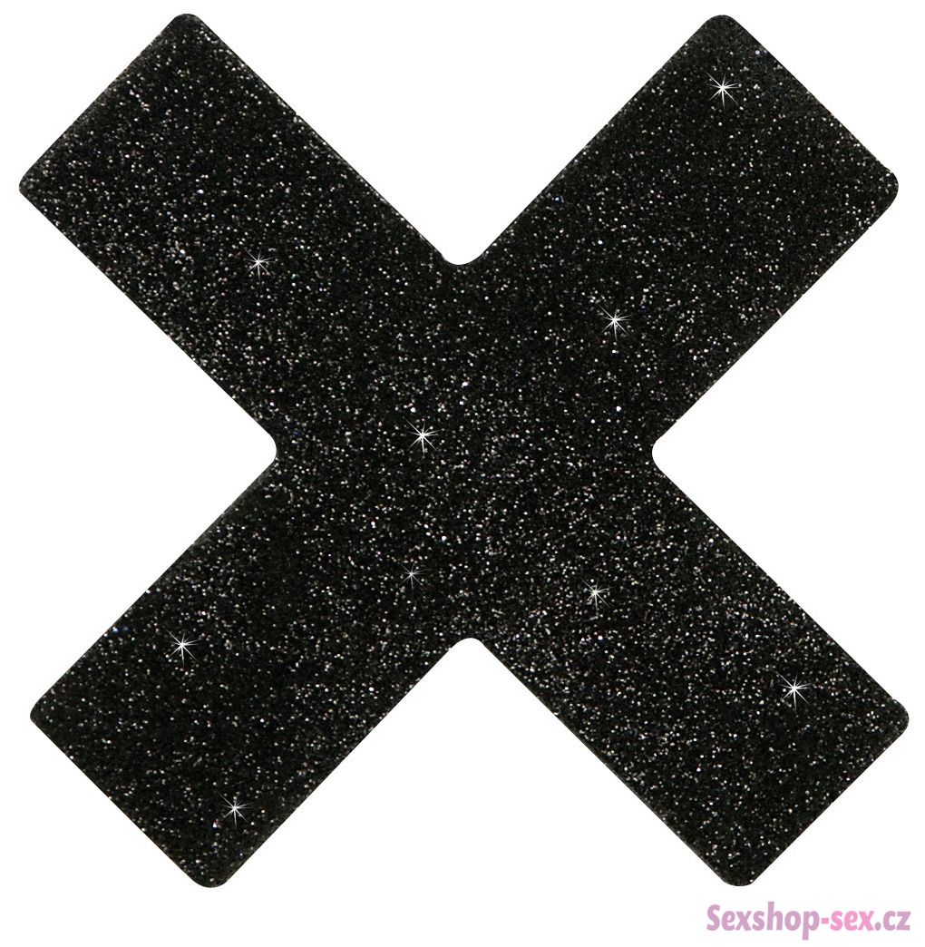 Lesklé černé samolepky na bradavky - tvar X (Cottelli)
