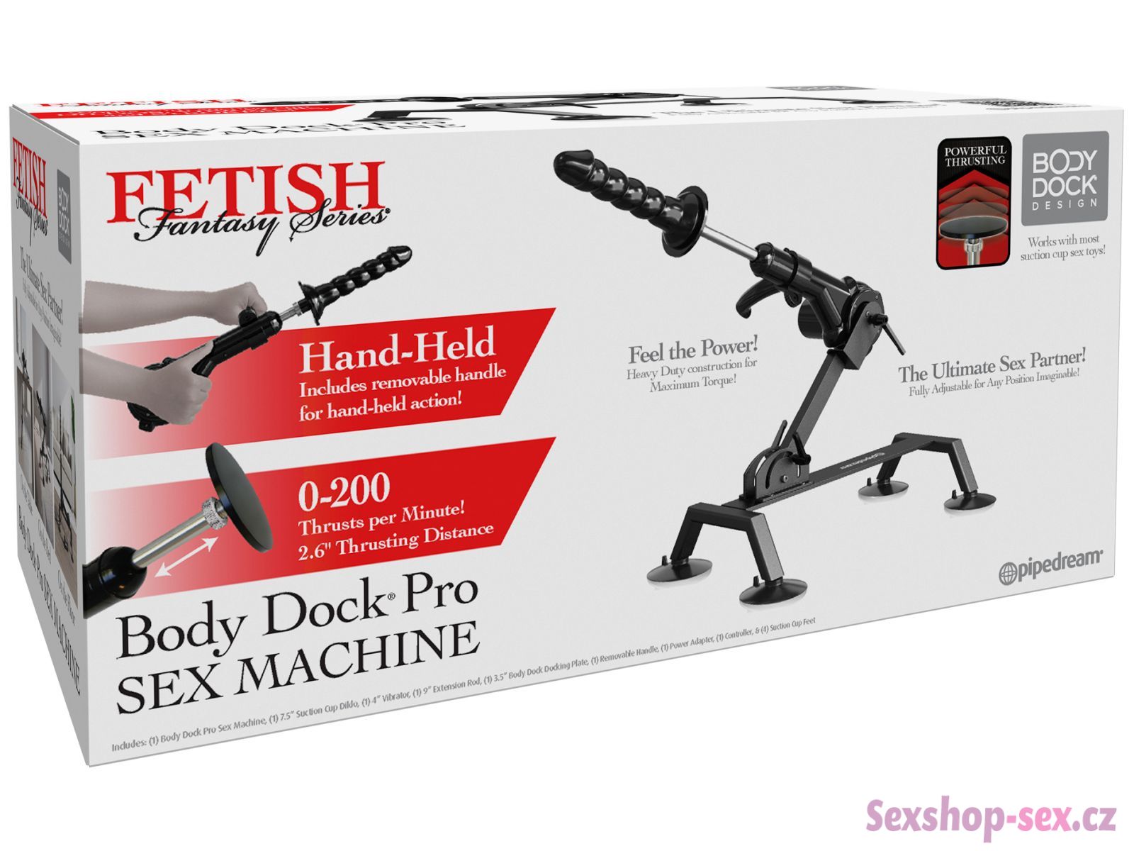 Díky patentovanému designu dokovací desky Body Dock® do stroje jednoduše upnete prakticky jakékoliv dildo, vibrátor nebo masturbátor s přísavkou (max. průměr přísavky 8,2 cm).
