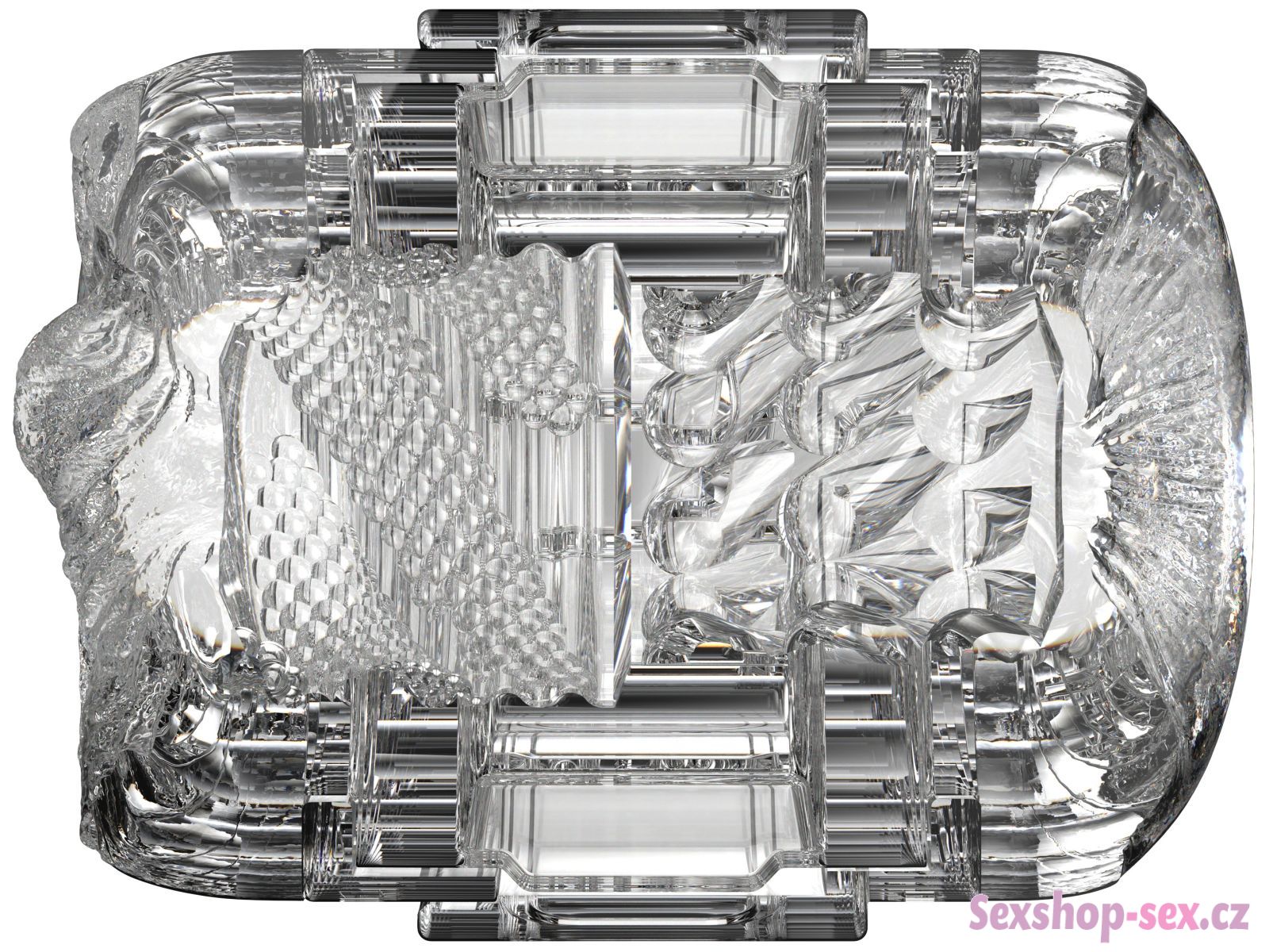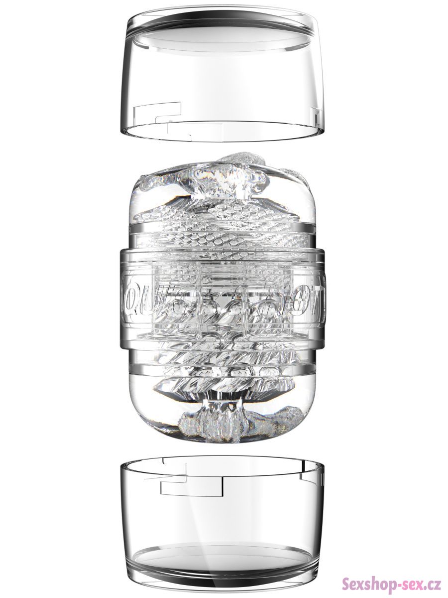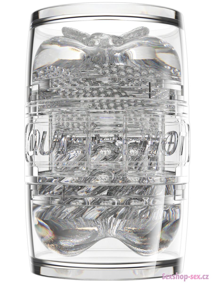 Průsvitné pouzdro z tvrdého plastu se dobře drží v ruce a navíc umožňuje sledovat váš penis v akci. Vnitřní vložku chrání dvě víčka a lze ji z pouzdra snadno vyjmout a vyčistit.