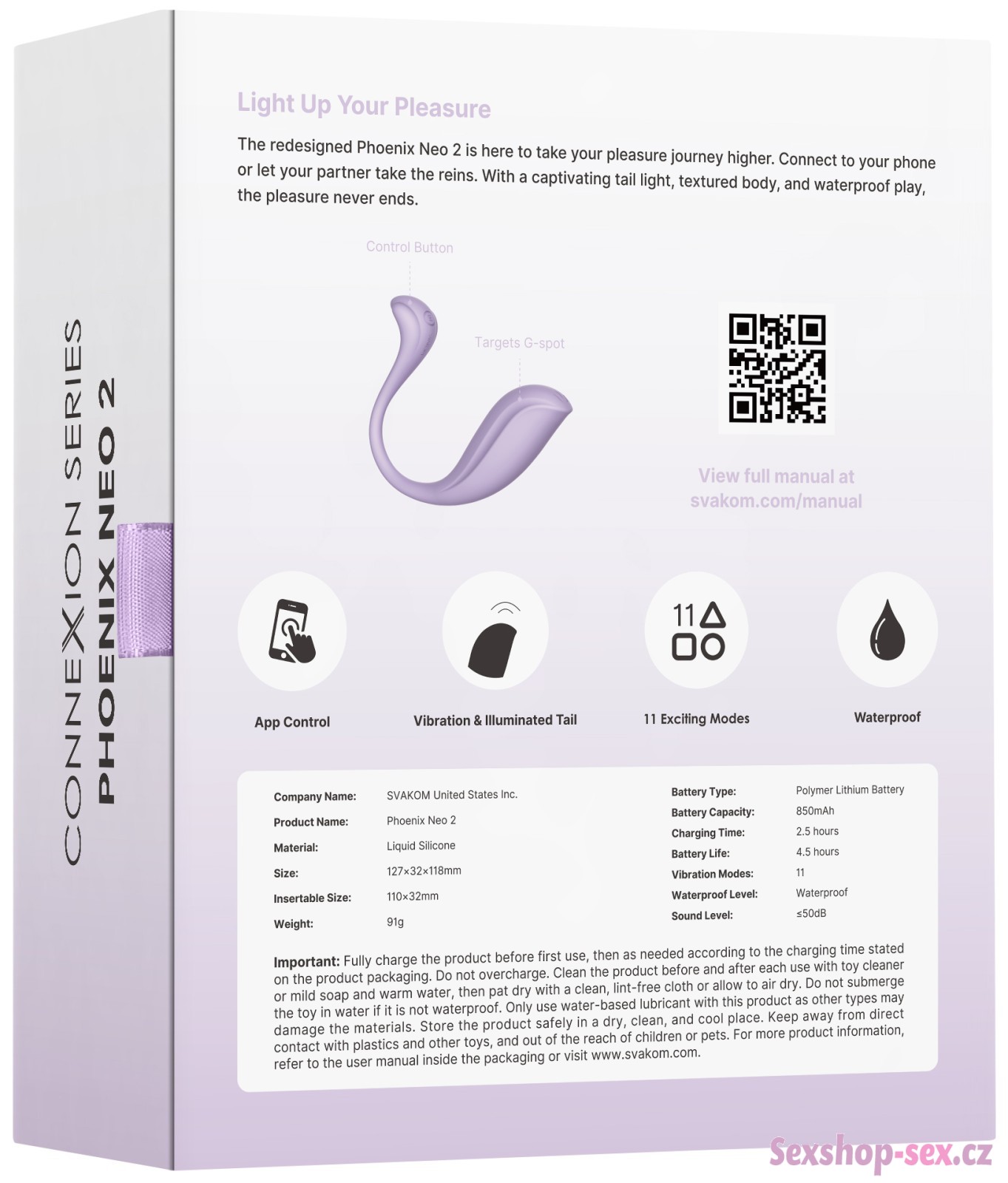 Užijte si spoustu vibrační zábavy, ať už jste doma, nebo venku. Interaktivní vibrační vajíčko Svakom Phoenix Neo 2 Pastel Lilac můžete ovládat mobilem a propojit s interaktivními porno videi.