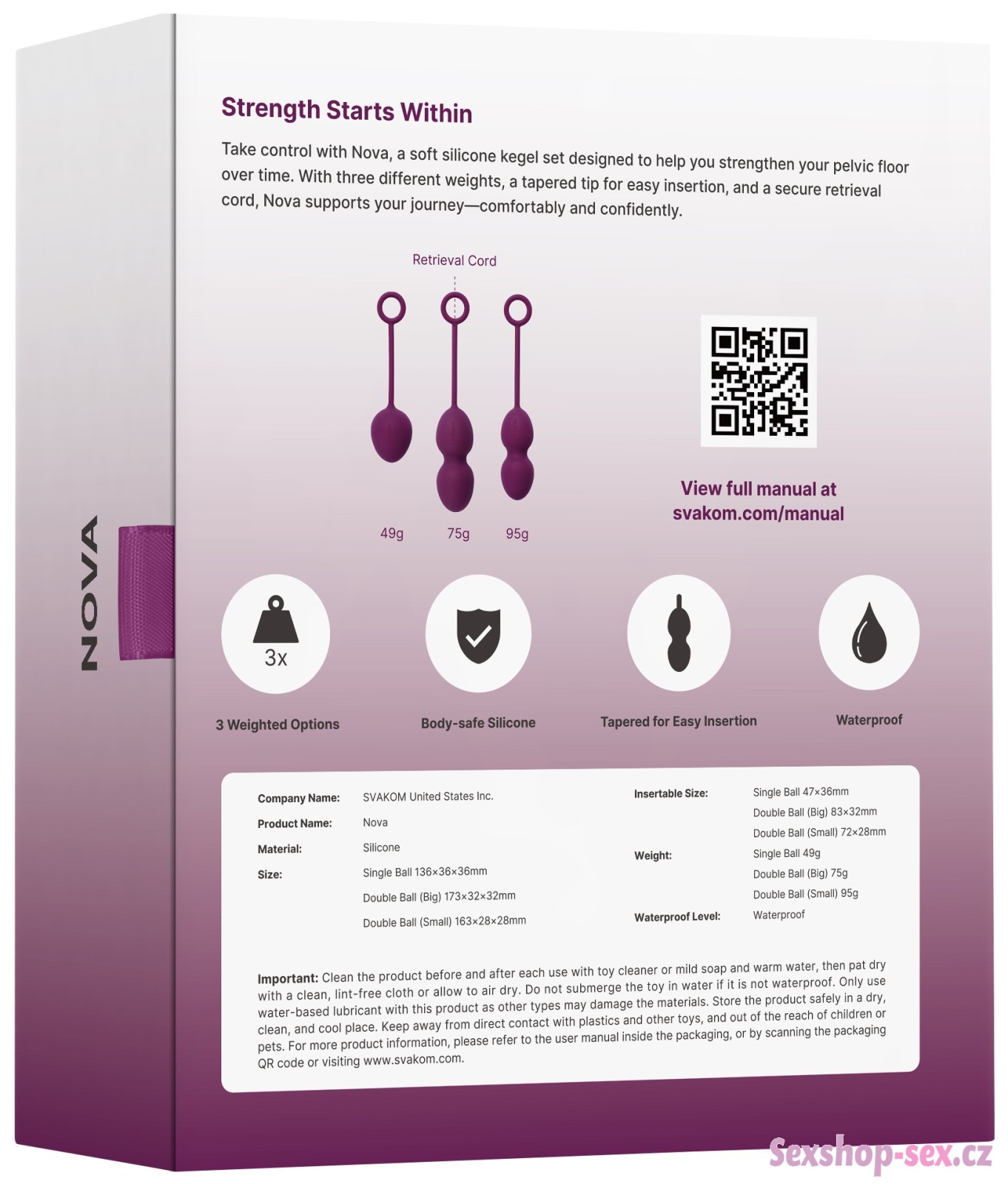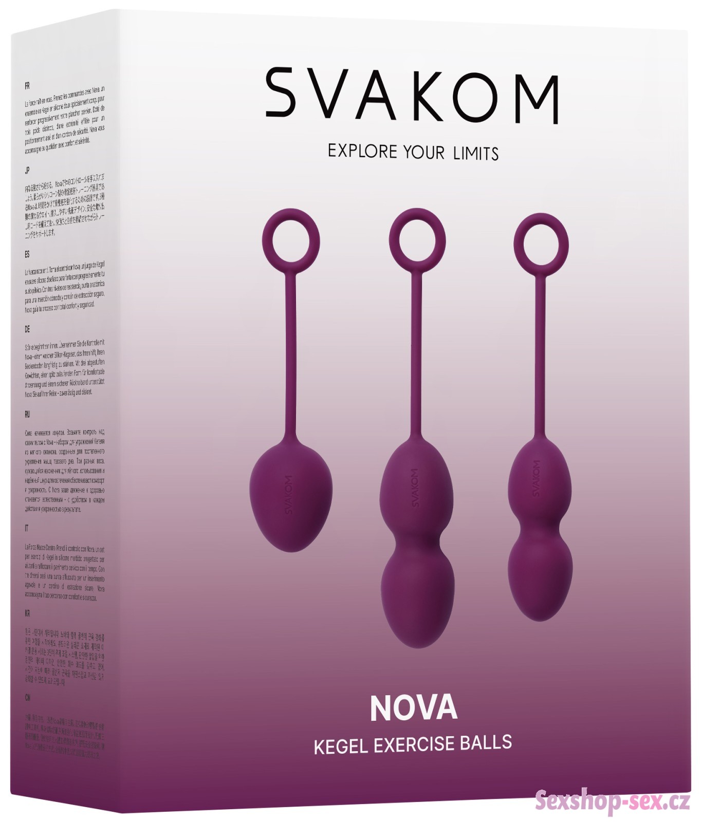 Sada venušiných kuliček Svakom Nova vám pomůže při posilování svalů pánevního dna. Kuličky mají různou hmotnost (49, 75 a 95 g), takže jsou ideální na postupný trénink.