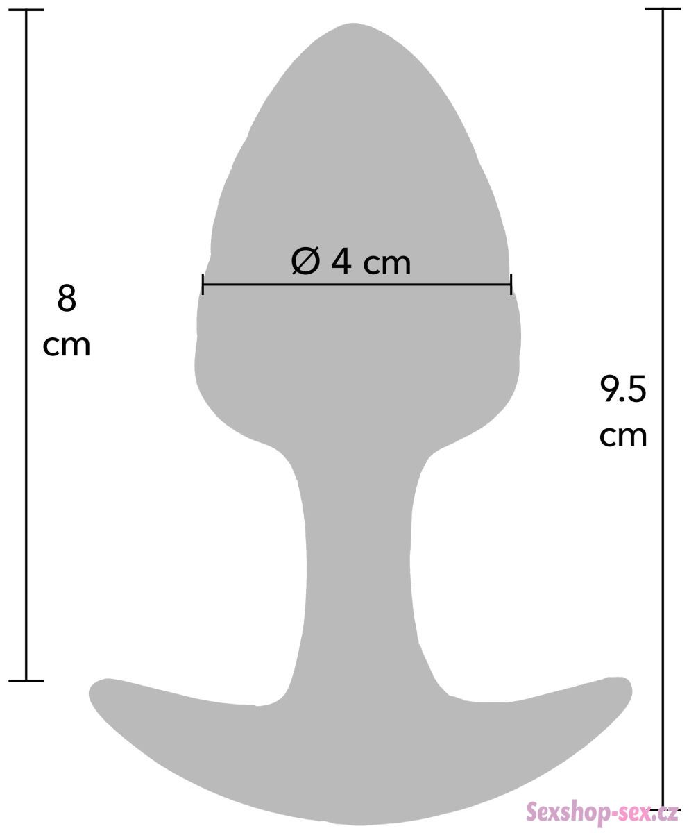 Anální kolík je vyrobený ze silikonu, uvnitř kterého je zalita fialová skleněná kulička. Má úzkou anální zarážku, která zajišťuje bezpečné a pohodlné hraní.